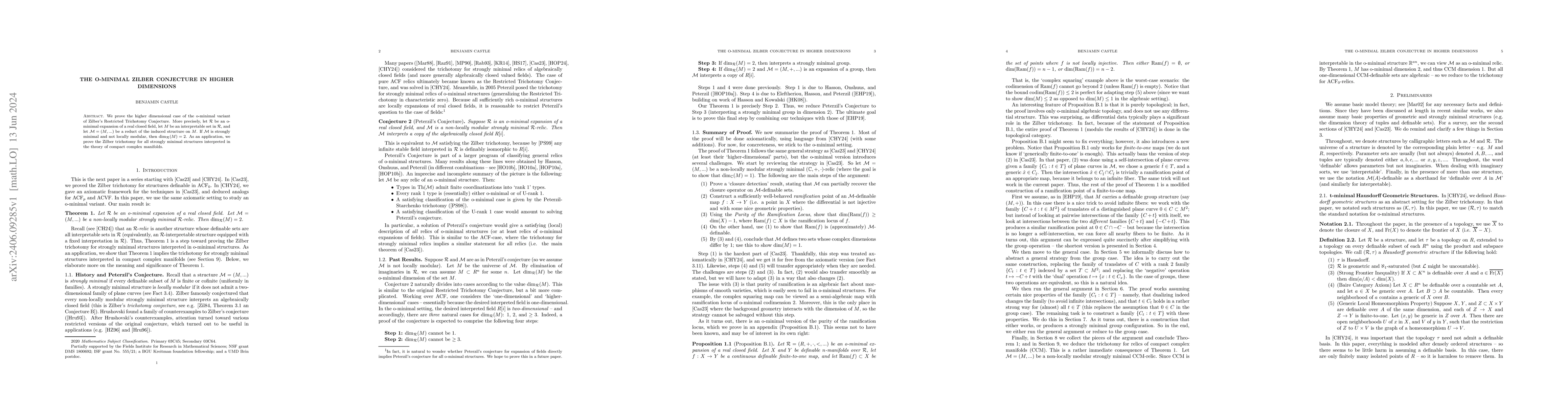 The paper proves the higher-dimensional o-minimal variant of Zilber's Restricted Trichotomy Conjecture, demonstrating that if a strongly minimal, non-locally modular set $\mathcal M$ in an o-minimal expansion $\mathcal R$ has dimension 2. It also applies this result to establish the Zilber trichotomy for strongly minimal structures in the theory of compact complex manifolds.