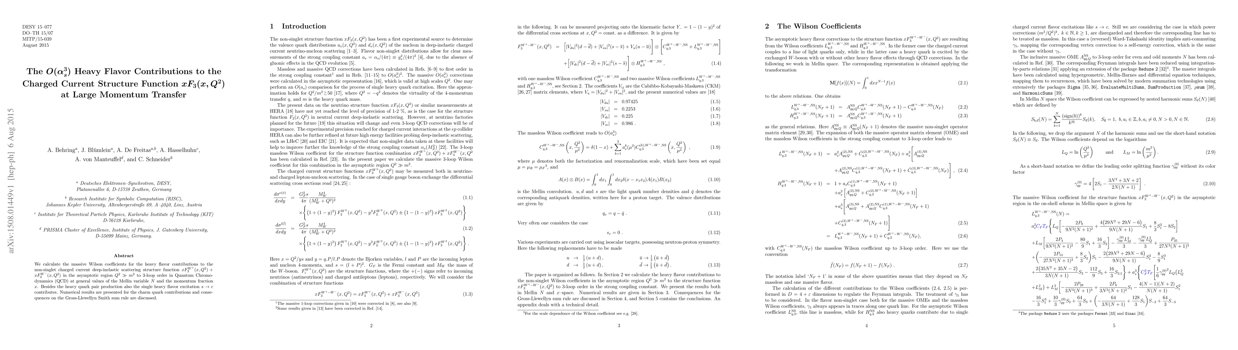 We calculate the massive Wilson coefficients for the heavy flavor contributions to the non-singlet charged current deep-inelastic scattering structure function $xF_3^{W^+}(x,Q^2)+xF_3^{W^-}(x,Q^2)$ in the asymptotic region $Q^2 \gg m^2$ to 3-loop order in Quantum Chromodynamics (QCD) at general values of the Mellin variable $N$ and the momentum fraction $x$. Besides the heavy quark pair production also the single heavy flavor excitation $s \rightarrow c$ contributes. Numerical results are presented for the charm quark contributions and consequences on the Gross-Llewellyn Smith sum rule are discussed.