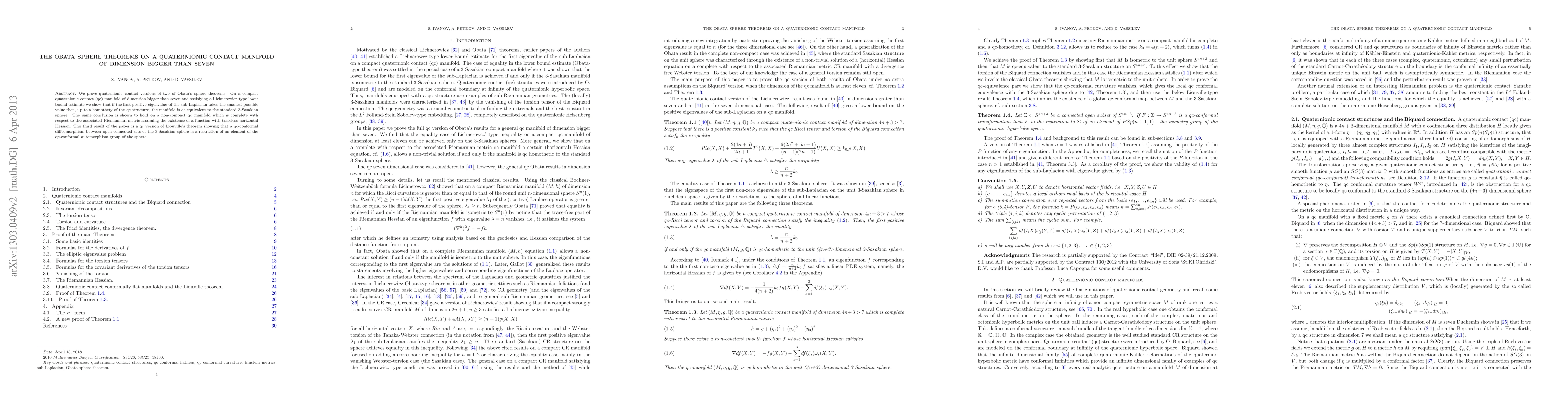 Researchers prove quaternionic contact manifolds of dimension 8 or higher with minimal sub-Laplacian eigenvalue are equivalent to the standard 3-Sasakian sphere up to a homothety.
