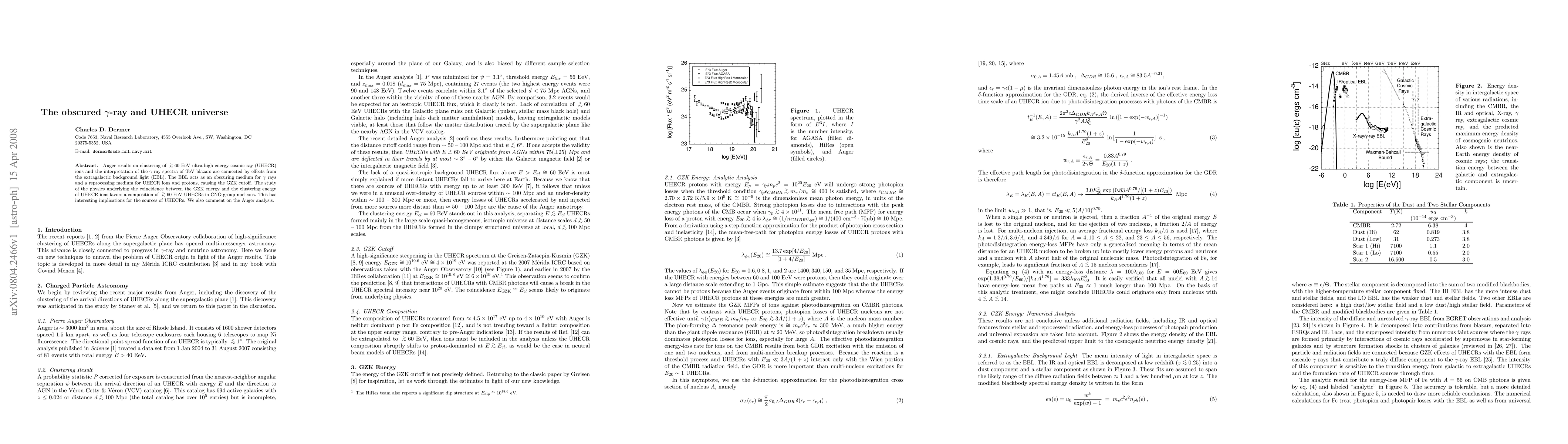Auger results on clustering of > 60 EeV ultra-high energy cosmic ray (UHECR) ions and the interpretation of the gamma-ray spectra of TeV blazars are connected by effects from the extragalactic background light (EBL). The EBL acts as an obscuring medium for gamma rays and a reprocessing medium for UHECR ions and protons, causing the GZK cutoff. The study of the physics underlying the coincidence between the GZK energy and the clustering energy of UHECR ions favors a composition of > 60 EeV UHECRs in CNO group nucleons. This has interesting implications for the sources of UHECRs. We also comment on the Auger analysis.