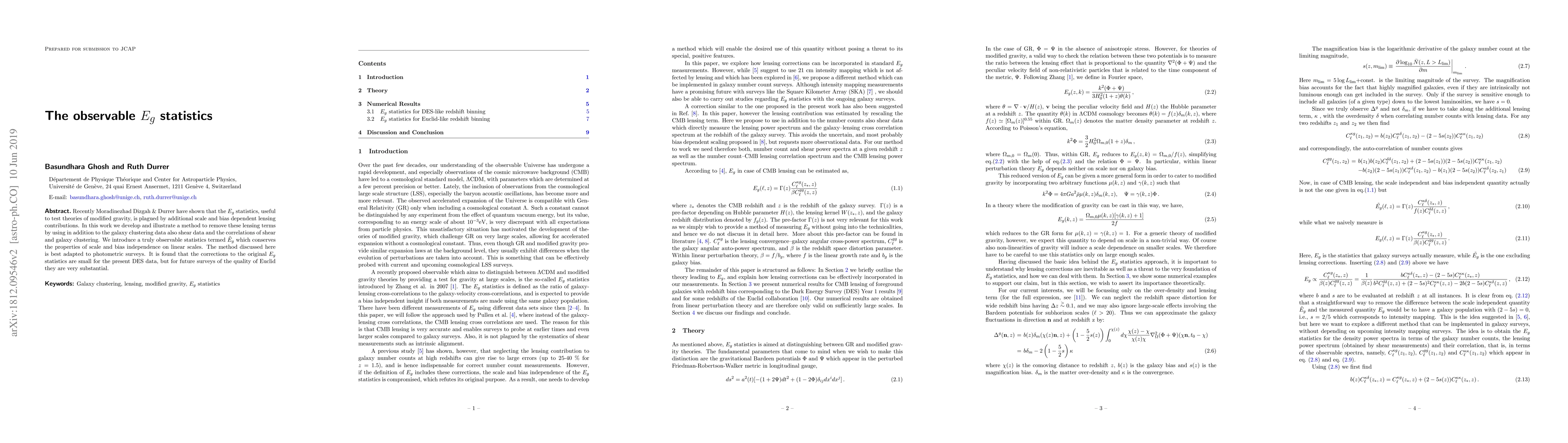 Recently Moradinezhad Dizgah & Durrer have shown that the $E_g$ statistics, useful to test theories of modified gravity, is plagued by additional scale and bias dependent lensing contributions. In this work we develop and illustrate a method to remove these lensing terms by using in addition to the galaxy clustering data also shear data and the correlations of shear and galaxy clustering. We introduce a truly observable statistics termed $\tilde E_g$ which conserves the properties of scale and bias independence on linear scales. The method discussed here is best adapted to photometric surveys. It is found that the corrections to the original $E_g$ statistics are small for the present DES data, but for future surveys of the quality of Euclid they are very substantial.