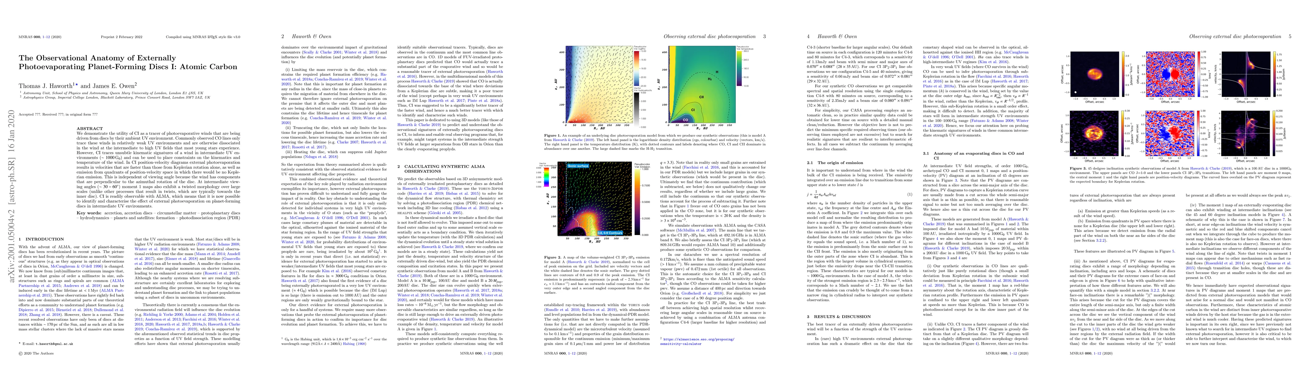 This research shows that atomic carbon (CI) can trace photoevaporative winds from planet-forming discs, which are driven by their UV environment. Unlike CO, CI is observable in intermediate UV conditions, providing insights into wind kinematics and temperature, and enabling the identification and characterization of external photoevaporation's impact on these discs using ALMA.