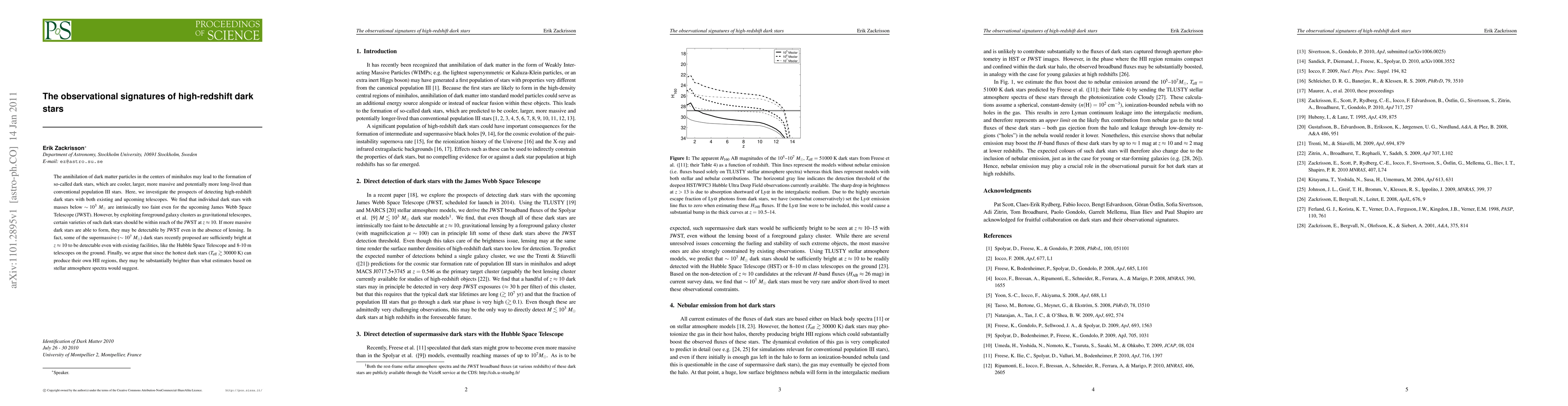 High-redshift dark stars, formed from dark matter annihilation, may be detectable with future telescopes like JWST, but only for massive versions, and could outshine typical stars in brightness due to their own HII regions.