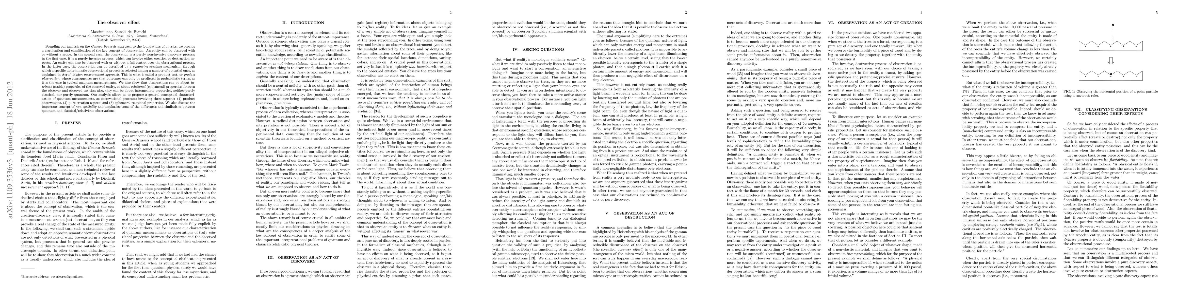 This paper clarifies and classifies the concept of observation in physics, proposing a general characterization of quantum measurements as observational processes involving product observations, creation aspects, and ephemeral relational properties.