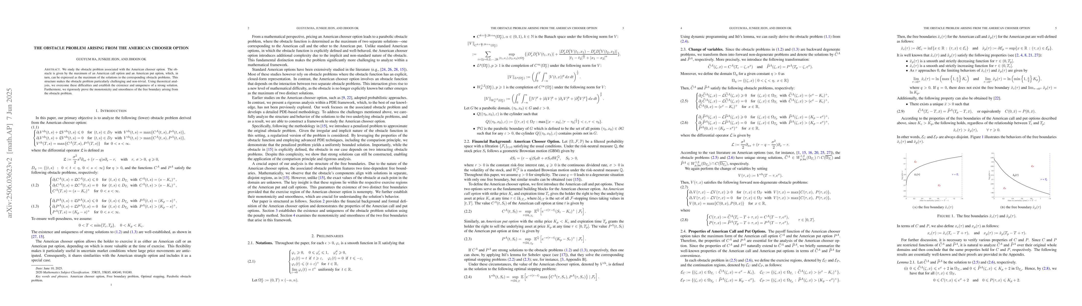 This work uniquely combines the American chooser option's complexity with the obstacle problem, providing new theoretical insights not previously explored in the literature.