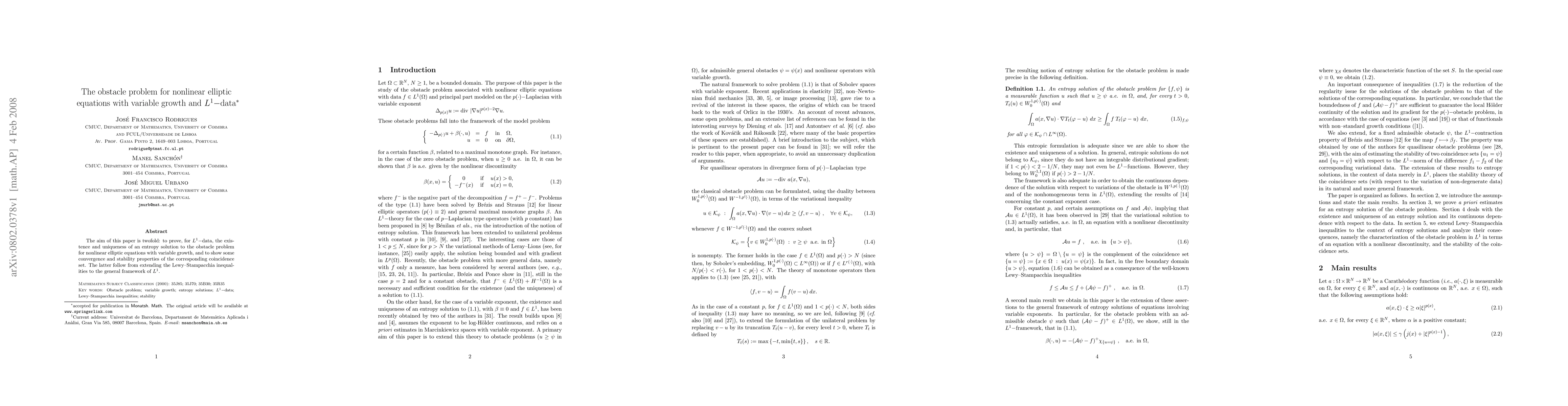 The aim of this paper is twofold: to prove, for L^1-data, the existence and uniqueness of an entropy solution to the obstacle problem for nonlinear elliptic equations with variable growth, and to show some convergence and stability properties of the corresponding coincidence set. The latter follow from extending the Lewy--Stampacchia inequalities to the general framework of L^1.