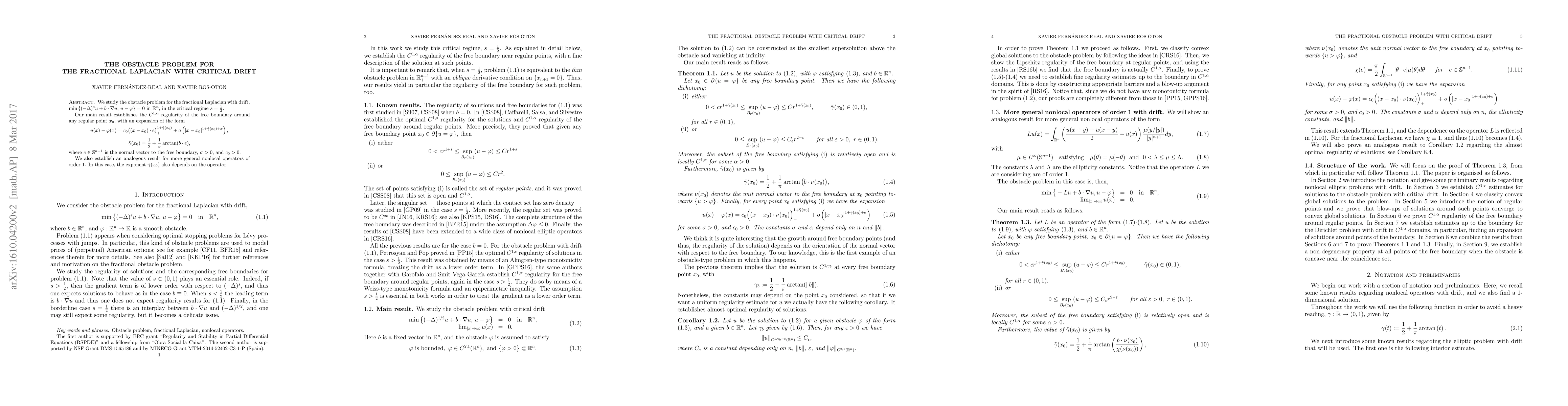 We study the obstacle problem for the fractional Laplacian with drift, $\min\left\{(-\Delta)^s u + b \cdot \nabla u,\,u -\varphi\right\} = 0$ in $\mathbb{R}^n$, in the critical regime $s = \frac{1}{2}$. Our main result establishes the $C^{1,\alpha}$ regularity of the free boundary around any regular point $x_0$, with an expansion of the form \[ u(x)-\varphi(x) = c_0\big((x-x_0)\cdot e\big)_+^{1+\tilde\gamma(x_0)} + o\left(|x-x_0|^{1+\tilde\gamma(x_0)+\sigma}\right), \] \[ \tilde{\gamma}(x_0) = \frac{1}{2}+\frac{1}{\pi} \arctan (b\cdot e), \] where $e \in \mathbb{S}^{n-1}$ is the normal vector to the free boundary, $\sigma >0$, and $c_0> 0$. We also establish an analogous result for more general nonlocal operators of order 1. In this case, the exponent $\tilde\gamma(x_0)$ also depends on the operator.