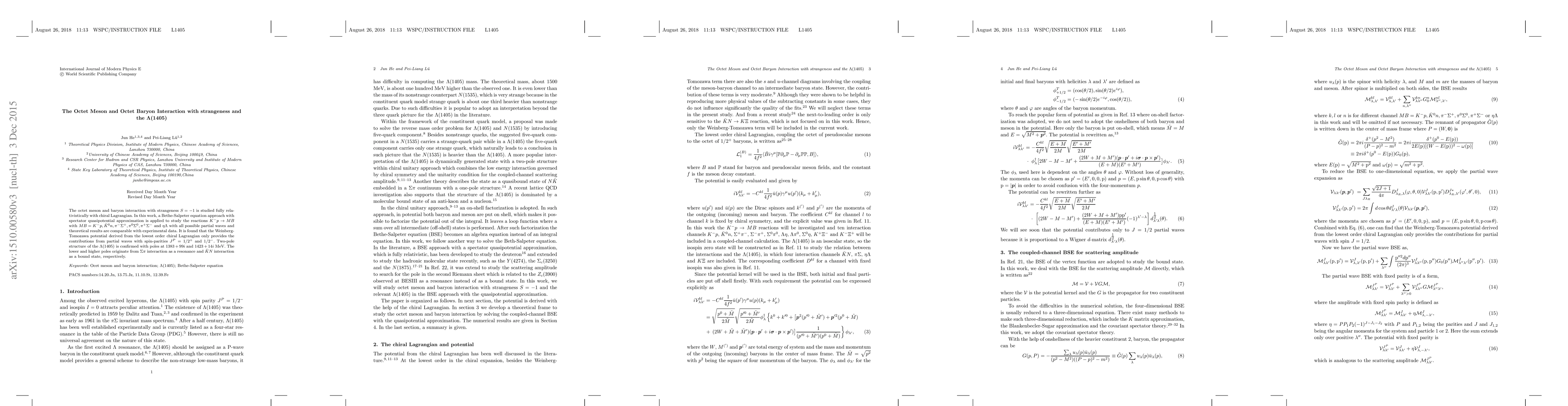 Researchers studied the interaction between octet mesons and baryons with strangeness, confirming a two-pole structure for the $eta(1405)$ resonance with poles from a $ar{K}N$ bound state and a $ar{ ho} ho$ interaction.