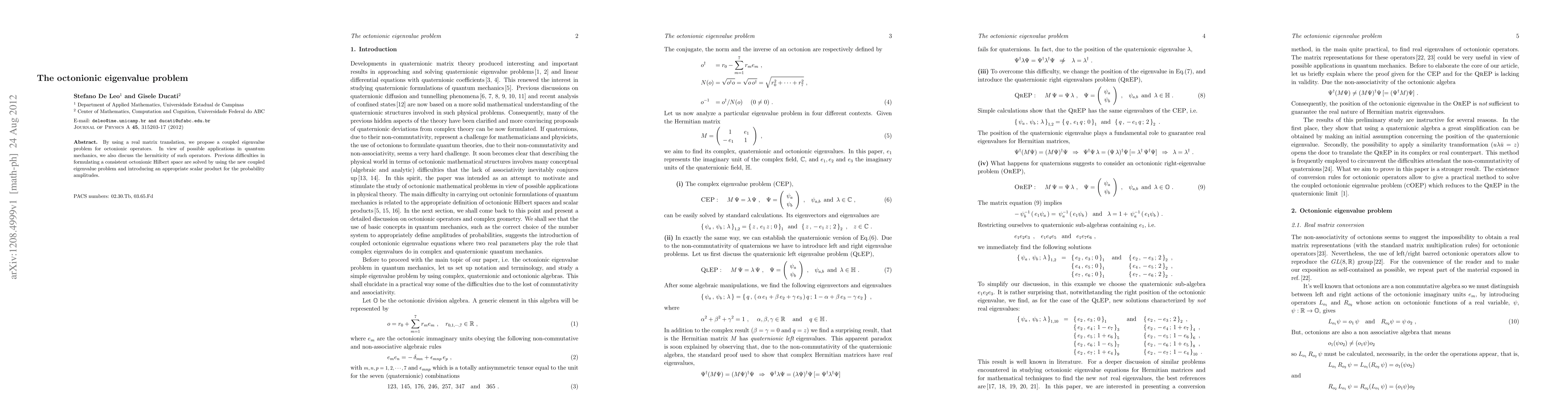 Summary: This paper proposes a novel coupled eigenvalue problem for octonionic operators using real matrix translation, addressing previous challenges in formulating a consistent octonionic Hilbert space and discussing the hermiticity of these operators for potential applications in quantum mechanics.