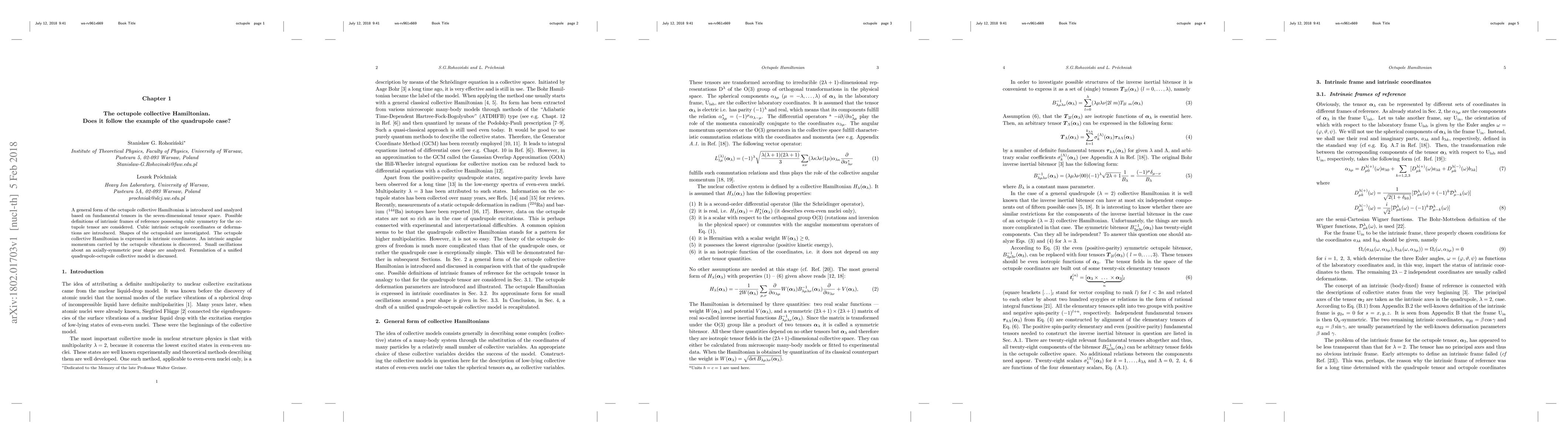 This paper introduces and analyzes a general form of the octupole collective Hamiltonian, exploring its intrinsic angular momentum and small oscillations about pear-shaped nuclei. It discusses a unified quadrupole-octupole collective model and investigates the octupole deformations in seven-dimensional tensor space.