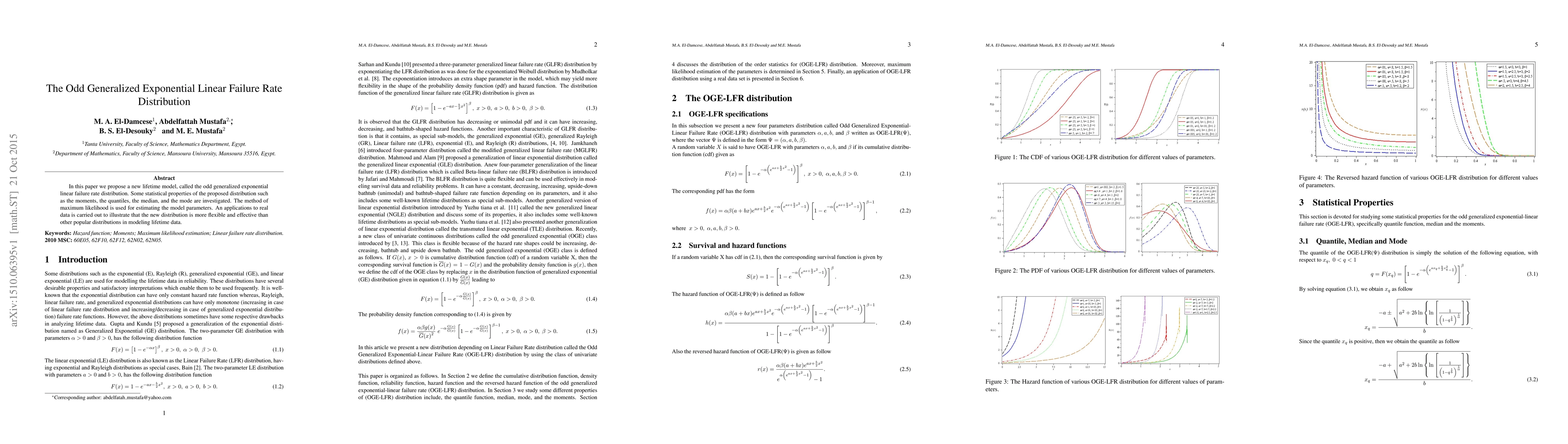 This paper introduces the odd generalized exponential linear failure rate distribution, investigating its statistical properties and employing maximum likelihood for parameter estimation. The new distribution is shown to be more flexible and effective than other popular models in modeling lifetime data through real data applications.