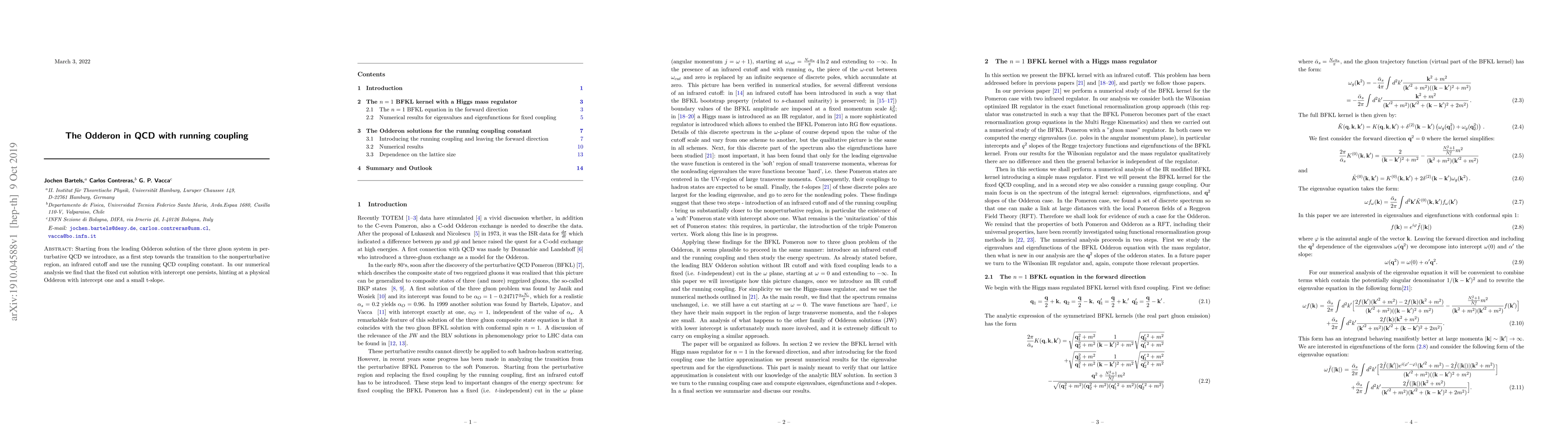 Summary: This paper investigates the Odderon in perturbative QCD with a running coupling constant, introducing an infrared cutoff. The study finds that the Odderon solution maintains an intercept of one, suggesting a physical Odderon with a small t-slope.