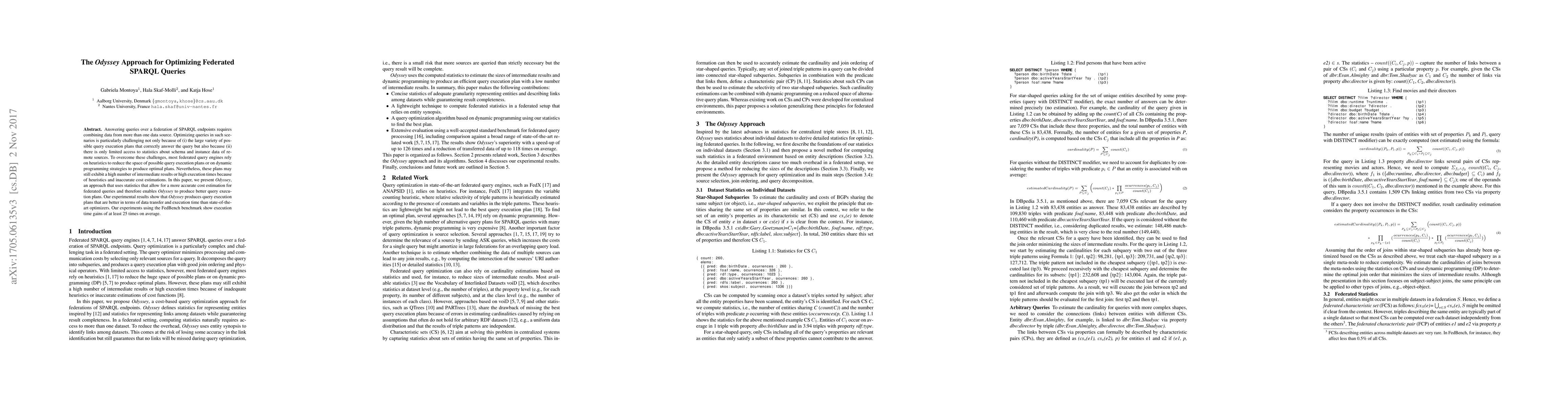 Answering queries over a federation of SPARQL endpoints requires combining data from more than one data source. Optimizing queries in such scenarios is particularly challenging not only because of (i) the large variety of possible query execution plans that correctly answer the query but also because (ii) there is only limited access to statistics about schema and instance data of remote sources. To overcome these challenges, most federated query engines rely on heuristics to reduce the space of possible query execution plans or on dynamic programming strategies to produce optimal plans. Nevertheless, these plans may still exhibit a high number of intermediate results or high execution times because of heuristics and inaccurate cost estimations. In this paper, we present Odyssey, an approach that uses statistics that allow for a more accurate cost estimation for federated queries and therefore enables Odyssey to produce better query execution plans. Our experimental results show that Odyssey produces query execution plans that are better in terms of data transfer and execution time than state-of-the-art optimizers. Our experiments using the FedBench benchmark show execution time gains of at least 25 times on average.