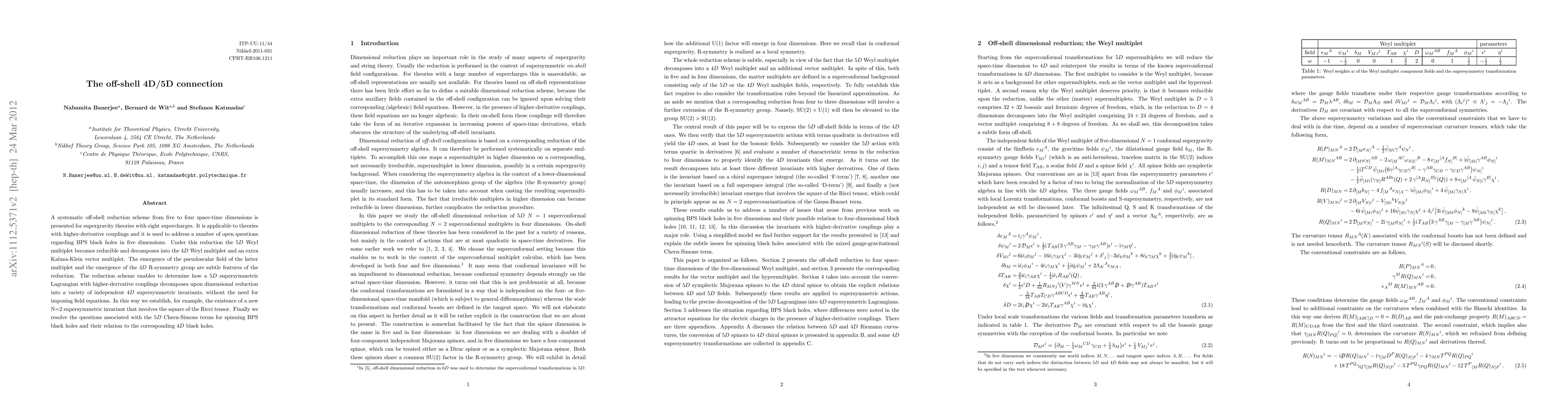 A systematic off-shell reduction scheme from five to four space-time dimensions is presented for supergravity theories with eight supercharges. It is applicable to theories with higher-derivative couplings and it is used to address a number of open questions regarding BPS black holes in five dimensions. Under this reduction the 5D Weyl multiplet becomes reducible and decomposes into the 4D Weyl multiplet and an extra Kaluza-Klein vector multiplet. The emergence of the pseudoscalar field of the latter multiplet and the emergence of the 4D R-symmetry group are subtle features of the reduction. The reduction scheme enables to determine how a 5D supersymmetric Lagrangian with higher-derivative couplings decomposes upon dimensional reduction into a variety of independent 4D supersymmetric invariants, without the need for imposing field equations. In this way we establish, for example, the existence of a new N=2 supersymmetric invariant that involves the square of the Ricci tensor. Finally we resolve the questions associated with the 5D Chern-Simons terms for spinning BPS black holes and their relation to the corresponding 4D black holes.