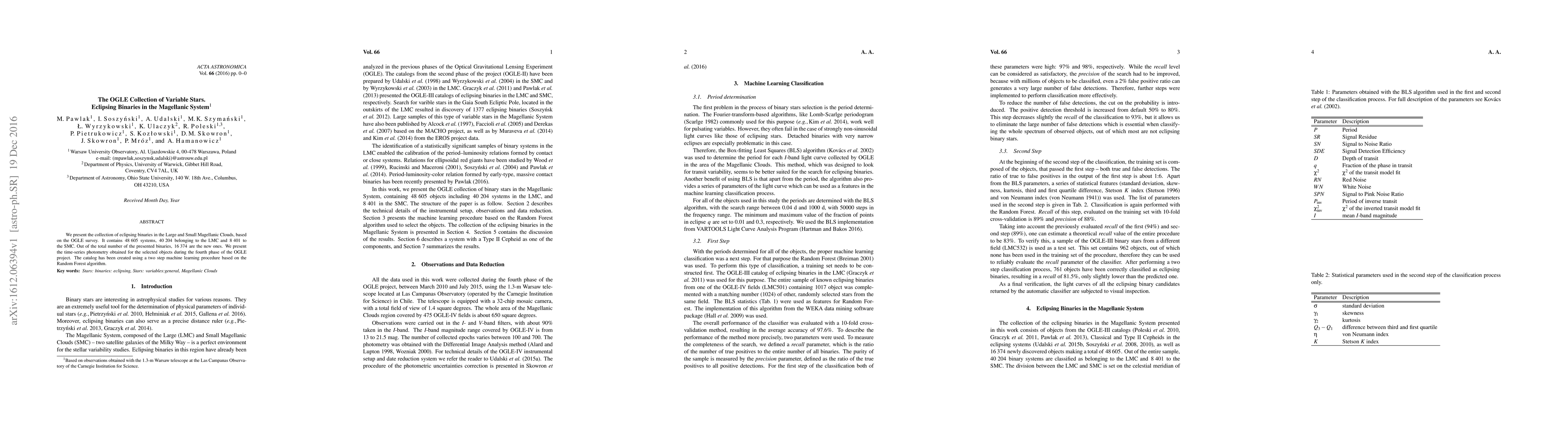 The OGLE survey has compiled a catalog of 48,605 eclipsing binaries in the Large and Small Magellanic Clouds, including 16,374 new systems. The catalog was created using a Random Forest algorithm-based machine learning procedure.