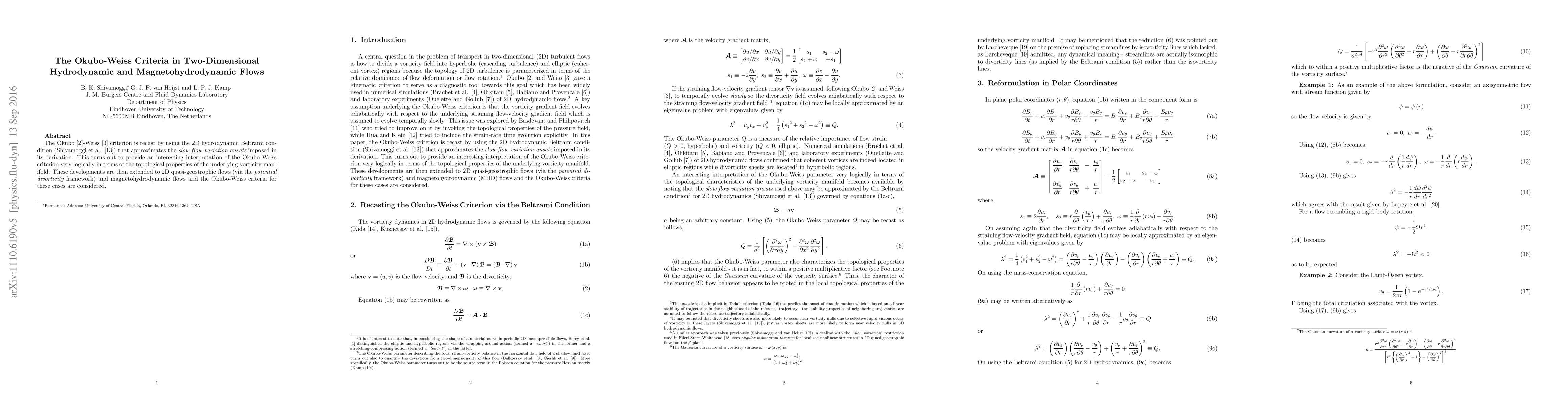 Researchers recast the Okubo-Weiss criterion to better understand its relationship with topological properties of vorticity manifolds in various fluid flows, including hydrodynamic, magnetohydrodynamic, and quasi-geostrophic flows.