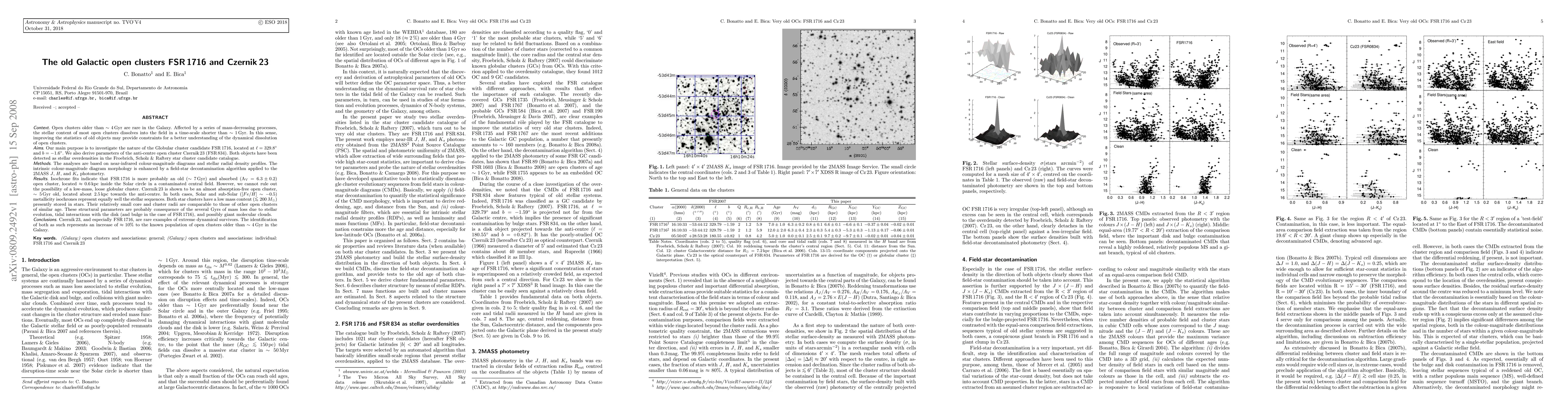 This paper investigates the old Galactic open clusters FSR 1716 and Czernik 23, finding FSR 1716 to be a probable old ($\sim7$ Gyr) cluster with significant absorption, while Czernik 23 is a $\sim5$ Gyr old, nearly absorption-free cluster. Both clusters exhibit low mass and small radii, suggesting they are rare survivors of mass loss and dynamical dissolution.