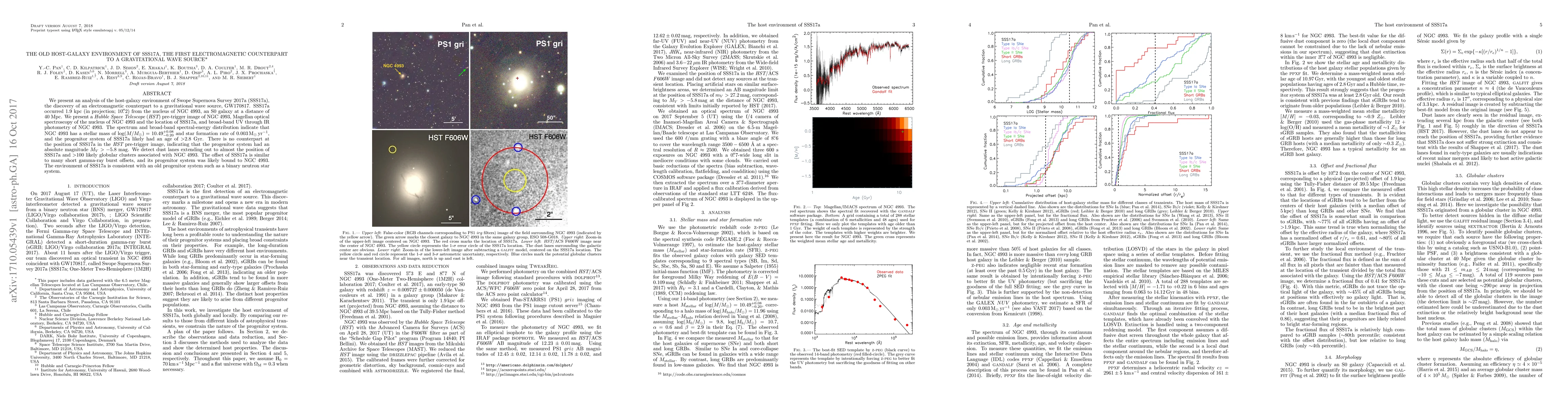 This paper analyzes the host-galaxy environment of SSS17a, the first electromagnetic counterpart to a gravitational wave source, revealing an old progenitor system likely bound to NGC 4993, an S0 galaxy with low star formation and dust lanes extending near the supernova's offset location.