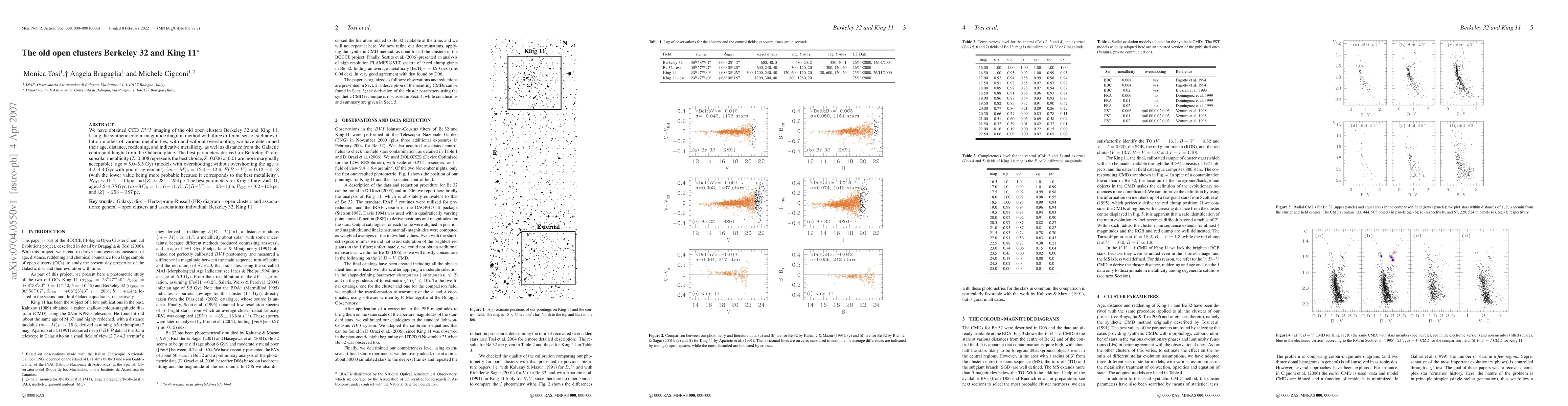 The study utilized CCD BVI imaging and synthetic color-magnitude diagrams (CMDs) with various stellar evolution models of different metallicities and overshooting assumptions to determine the age, distance, reddening, metallicity, Galactic coordinates, and height from the Galactic plane of the old open clusters Berkeley 32 and King 11.