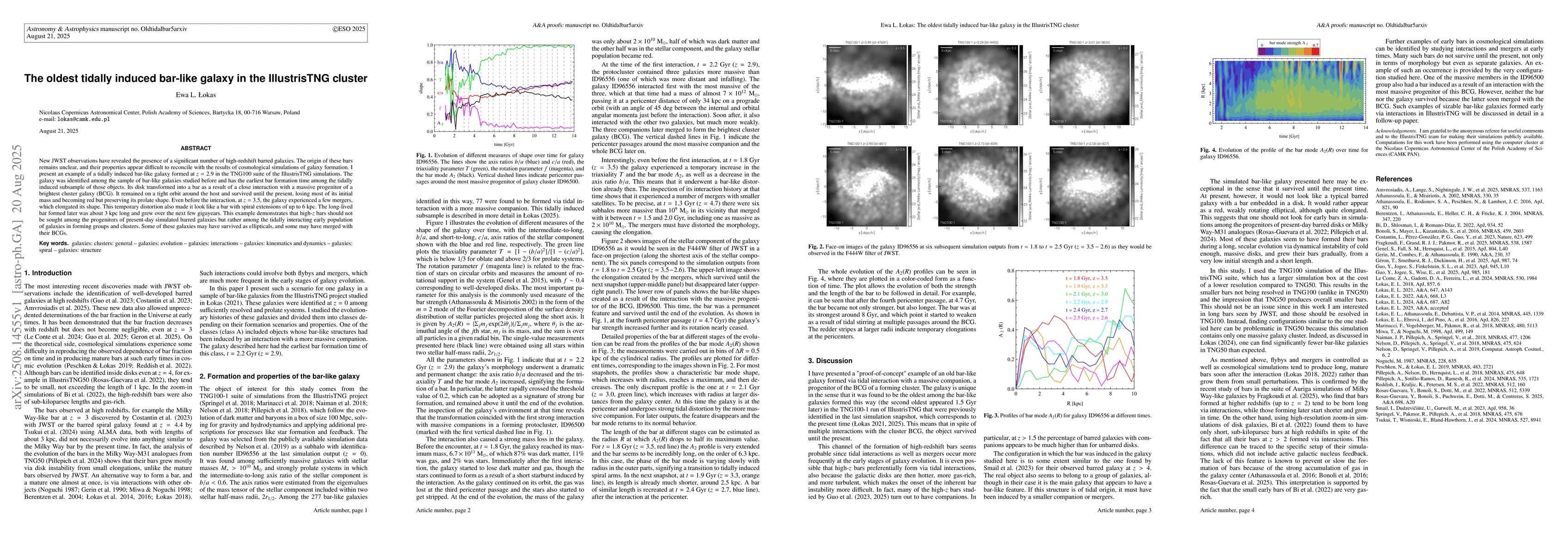 The paper presents a detailed analysis of a bar-like galaxy formed through tidal interaction in the IllustrisTNG simulation, offering a potential explanation for the high-redshift barred galaxies observed by JWST.