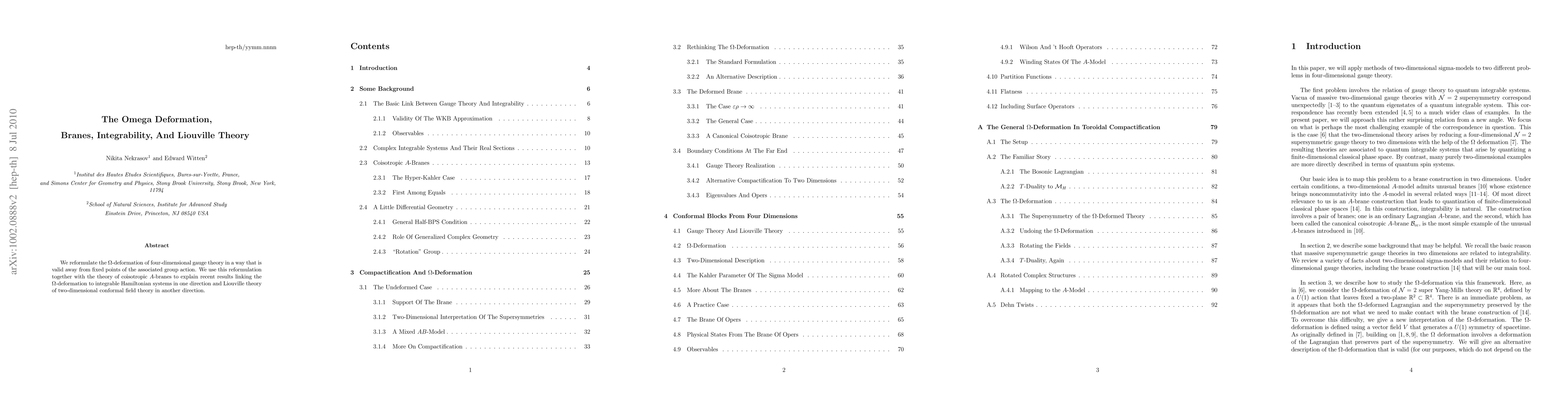 We reformulate the Omega-deformation of four-dimensional gauge theory in a way that is valid away from fixed points of the associated group action. We use this reformulation together with the theory of coisotropic A-branes to explain recent results linking the Omega-deformation to integrable Hamiltonian systems in one direction and Liouville theory of two-dimensional conformal field theory in another direction.