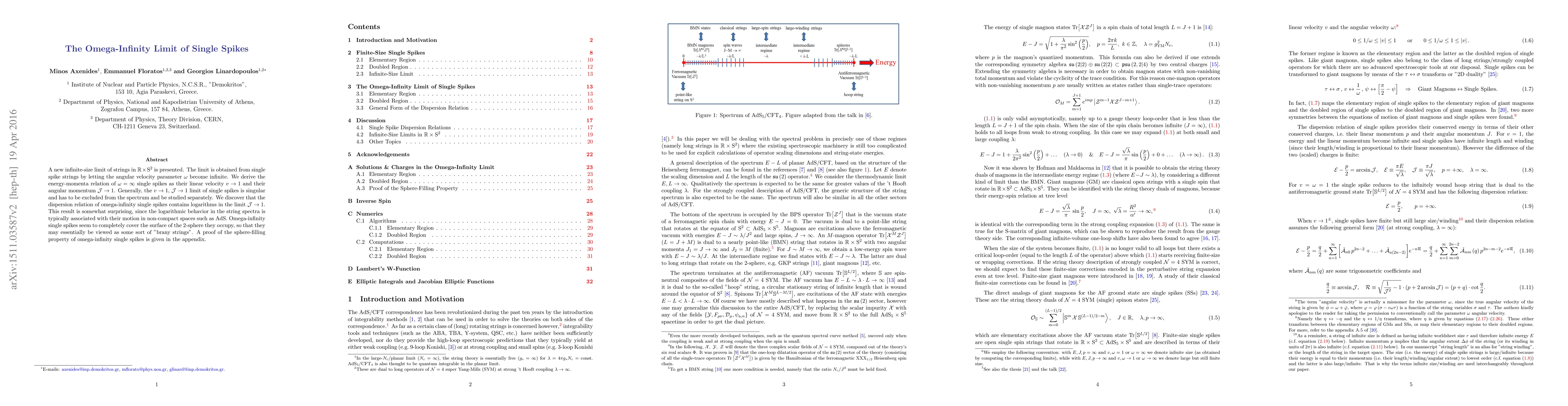 This research introduces the omega-infinity limit of single spikes in RxS2, derived by letting angular velocity parameter omega approach infinity. The dispersion relation of these 'brany strings' contains logarithms as angular momentum J approaches 1, a surprising finding typically linked to non-compact spaces. The paper also proves these omega-infinity single spikes fill the 2-sphere surface they occupy.