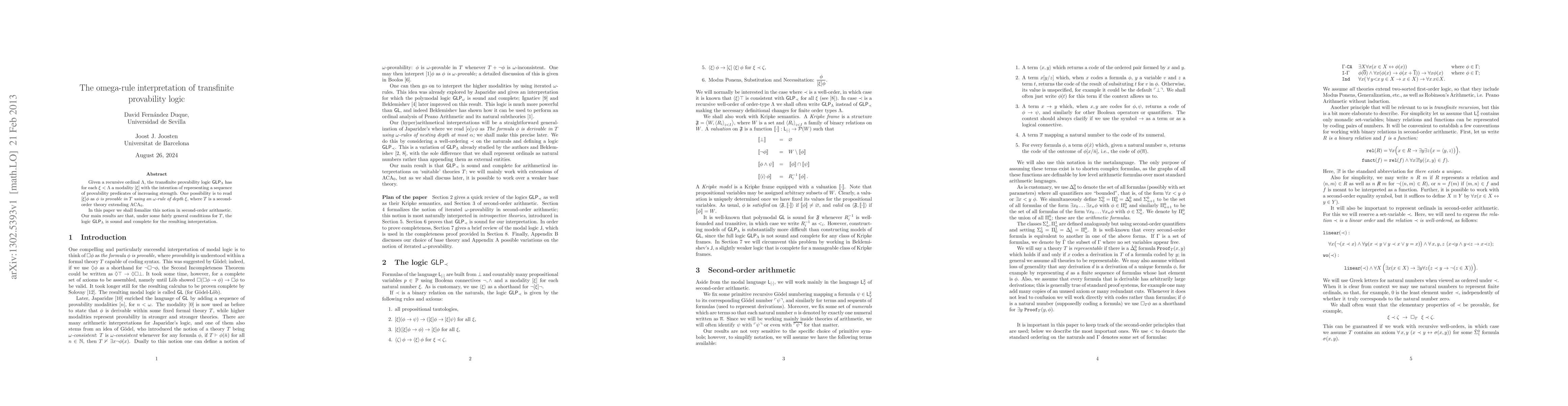 This paper explores transfinite provability logics with modal operators corresponding to recursive ordinals and the omega rule, formalized in second-order number theory. It proves soundness and completeness for this interpretation and demonstrates the possibility of lowering the base theory from ACA_0 to theories below RCA_0.