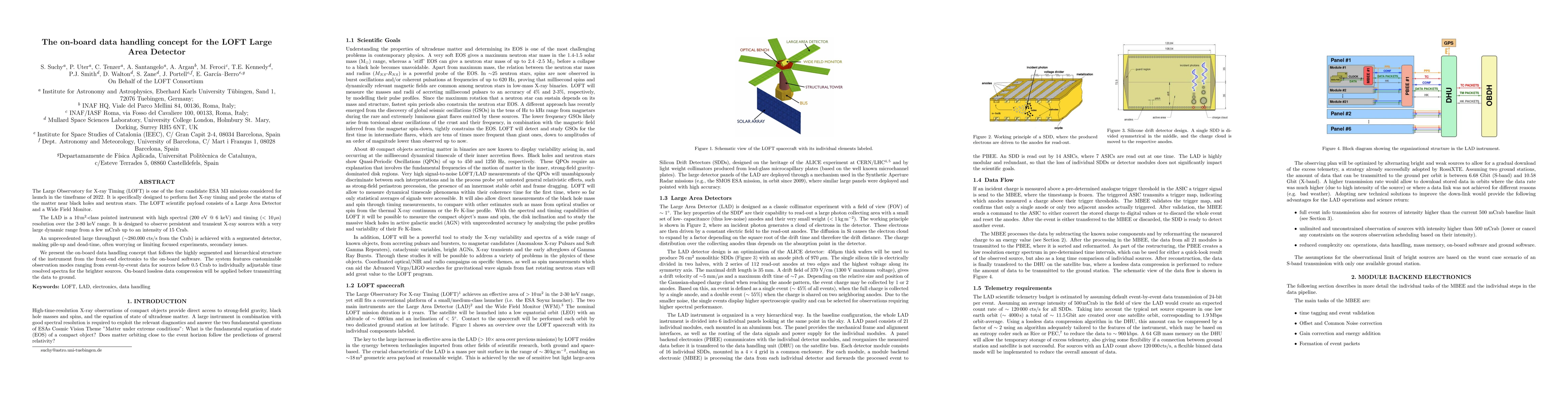 The LOFT mission's Large Area Detector (LAD) utilizes a highly segmented and hierarchical on-board data handling system to manage its large throughput and dynamic range, featuring customizable observation modes and on-board lossless data compression. This system ensures efficient data transmission from the instrument to ground stations.