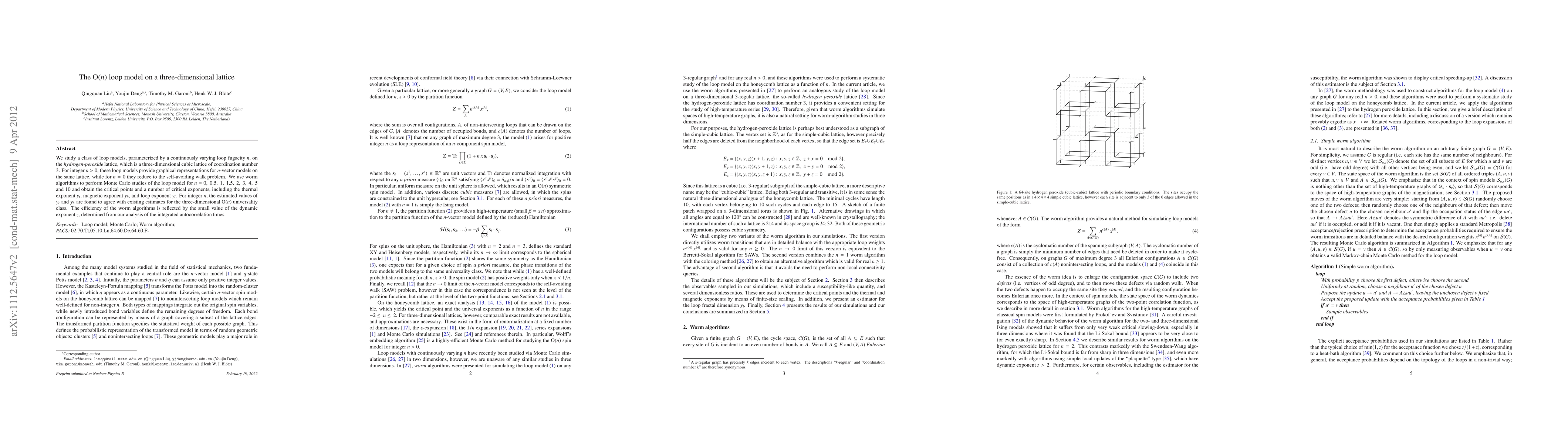 This research investigates loop models on a three-dimensional hydrogen-peroxide lattice, employing worm algorithms for Monte Carlo simulations to determine critical points and exponents. The study finds consistency with existing estimates for the O(n) universality class, highlighting the efficiency of the used algorithms.