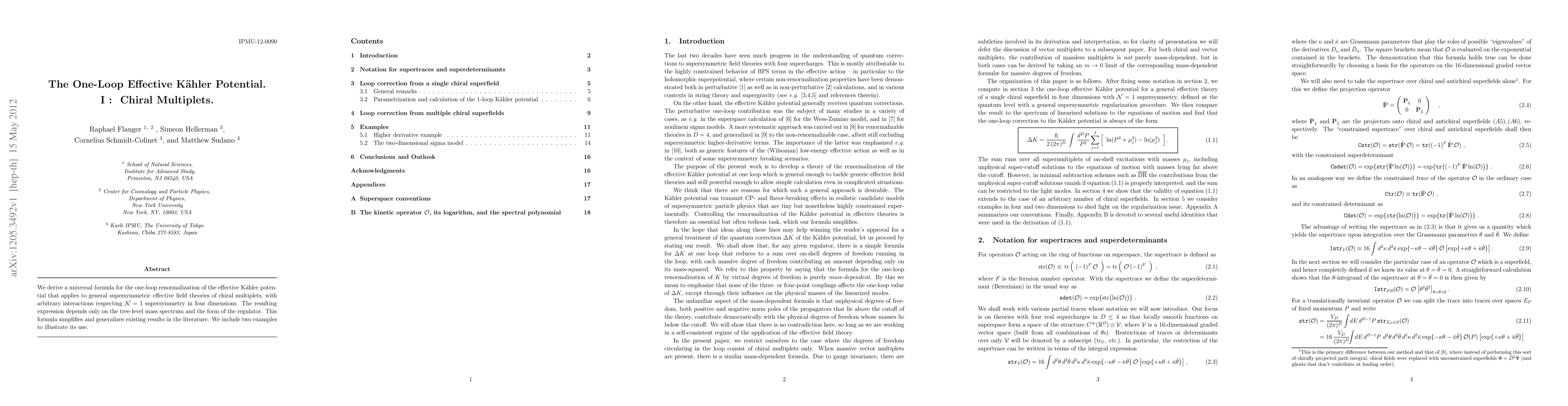 This paper derives a universal one-loop renormalization formula for the effective Kähler potential in N=1 supersymmetric theories with chiral multiplets, simplifying and generalizing previous results. The formula depends solely on the tree-level mass spectrum and the regulator's form, with two examples provided for illustration.