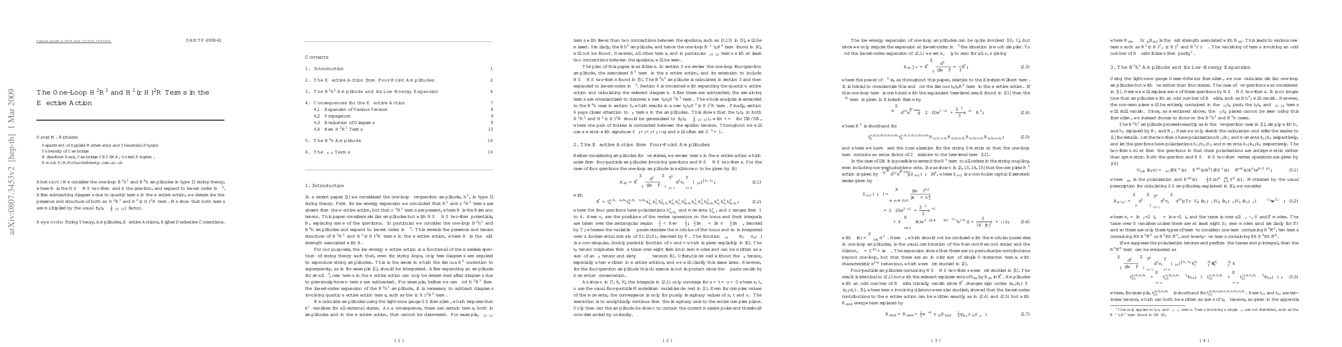 We consider the one-loop B^2h^3 and B^4h amplitudes in type II string theory, where B is the NS-NS two-form and h the graviton, and expand to lowest order in alpha'. After subtracting diagrams due to quartic terms in the effective action, we determine the presence and structure of both an H^2R^3 and H^2(DH)^2R term. We show that both terms are multiplied by the usual (t_8t_8\pm{1/8}\epsilon_{10}\epsilon_{10}) factor.