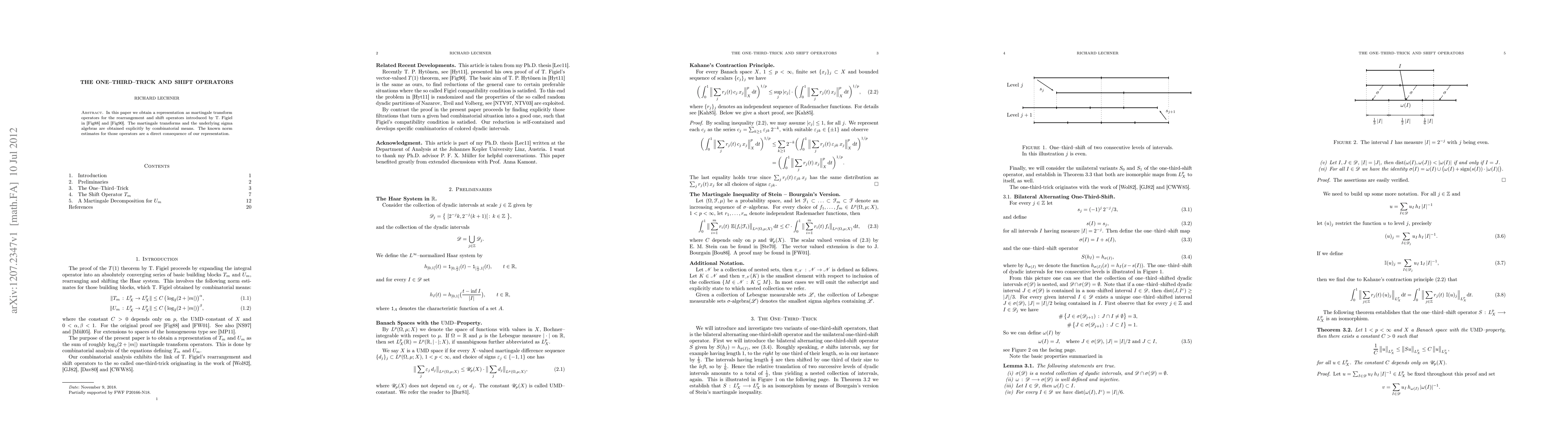 In this paper we obtain a representation as martingale transform operators for the rearrangement and shift operators introduced by T. Figiel. The martingale transforms and the underlying sigma algebras are obtained explicitly by combinatorial means. The known norm estimates for those operators are a direct consequence of our representation.