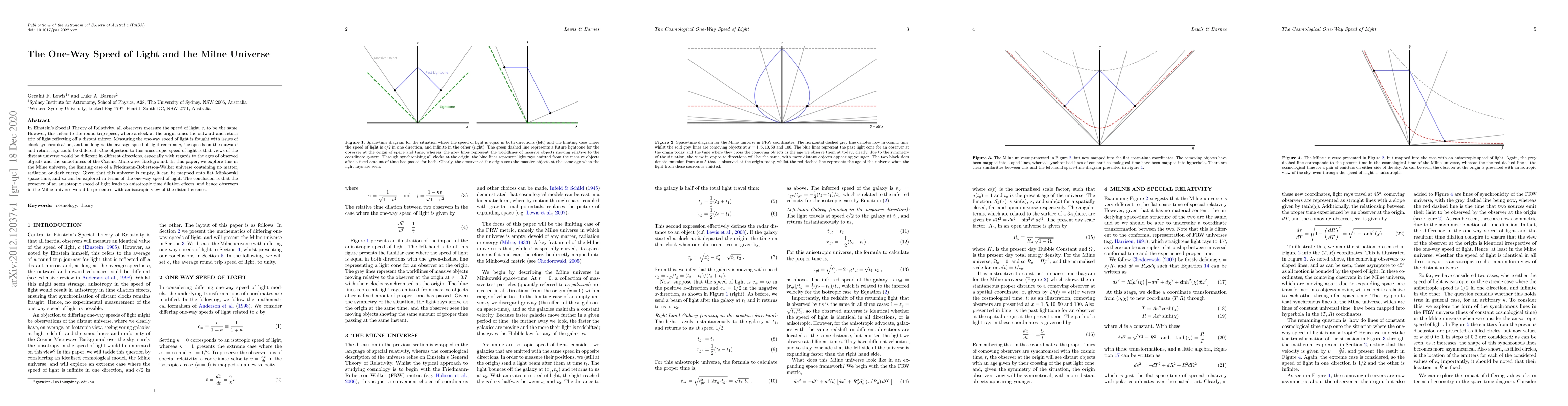 In Einstein's Special Theory of Relativity, all observers measure the speed of light, $c$, to be the same. However, this refers to the round trip speed, where a clock at the origin times the outward and return trip of light reflecting off a distant mirror. Measuring the one-way speed of light is fraught with issues of clock synchronisation, and, as long as the average speed of light remains $c$, the speeds on the outward and return legs could be different. One objection to this anisotropic speed of light is that views of the distant universe would be different in different directions, especially with regards to the ages of observed objects and the smoothness of the Cosmic Microwave Background. In this paper, we explore this in the Milne universe, the limiting case of a Friedmann-Robertson-Walker universe containing no matter, radiation or dark energy. Given that this universe is empty, it can be mapped onto flat Minkowski space-time, and so can be explored in terms of the one-way speed of light. The conclusion is that the presence of an anisotropic speed of light leads to anisotropic time dilation effects, and hence observers in the Milne universe would be presented with an isotropic view of the distant cosmos.
