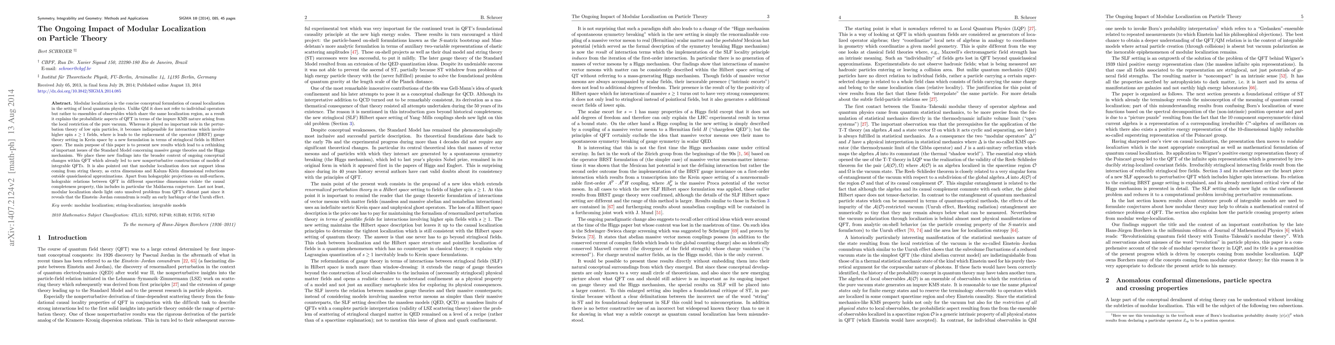 Modular localization is the concise conceptual formulation of causal localization in the setting of local quantum physics. Unlike QM it does not refer to individual operators but rather to ensembles of observables which share the same localization region, as a result it explains the probabilistic aspects of QFT in terms of the impure KMS nature arising from the local restriction of the pure vacuum. Whereas it played no important role in the perturbation theory of low spin particles, it becomes indispensible for interactions which involve higher spin $s\geq1$ fields, where is leads to the replacement of the operator (BRST) gauge theory setting in Krein space by a new formulation in terms of stringlocal fields in Hilbert space. The main purpose of this paper is to present new results which lead to a rethinking of important issues of the Standard Model concerning massive gauge theories and the Higgs mechanism. We place these new findings into the broader context of ongoing conceptual changes within QFT which already led to new nonperturbative constructions of models of integrable QFTs. It is also pointed out that modular localization does not support ideas coming from string theory, as extra dimensions and Kaluza-Klein dimensional reductions outside quasiclassical approximations. Apart from hologarphic projections on null-surfaces, holograhic relations between QFT in different spacetime dimensions violate the causal completeness property, this includes in particular the Maldacena conjecture. Last not least, modular localization sheds light onto unsolved problems from QFT's distant past since it reveals that the Einstein-Jordan conundrum is really an early harbinger of the Unruh effect.