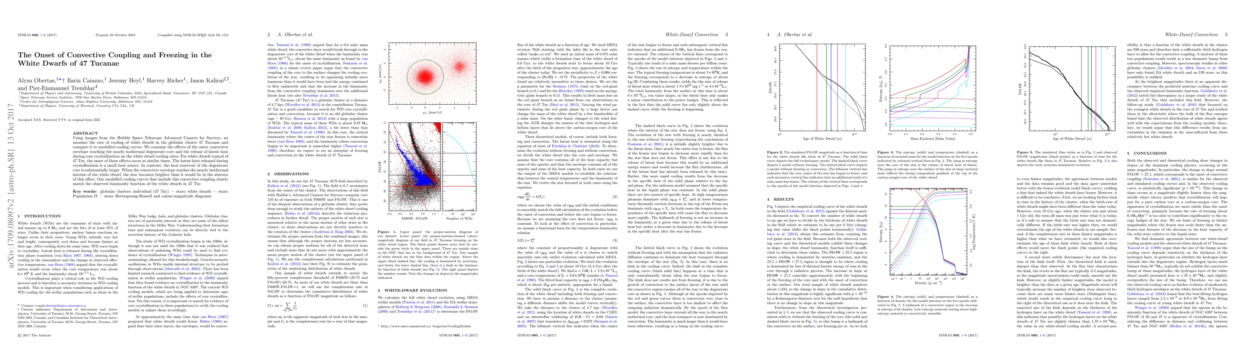This paper investigates the cooling rates of white dwarfs in the 47 Tucanae globular cluster, finding that convective coupling and core crystallisation significantly affect their luminosity. The study shows that the latent heat from crystallisation is minor compared to the larger heat reservoir of the core, and the convective envelope's interaction with the core causes the white dwarfs to brighten.