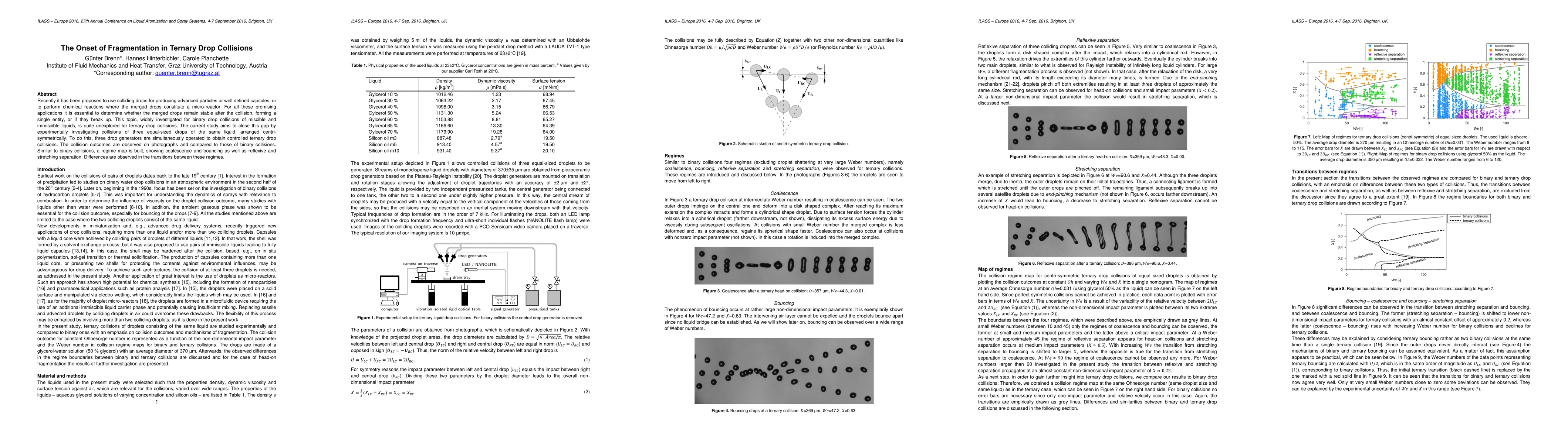 This study investigates ternary drop collisions to determine whether merged drops remain stable or fragment, using controlled experiments with three equal-sized drops. The research reveals new insights into the fragmentation regimes compared to binary collisions, providing a regime map for ternary drop interactions.