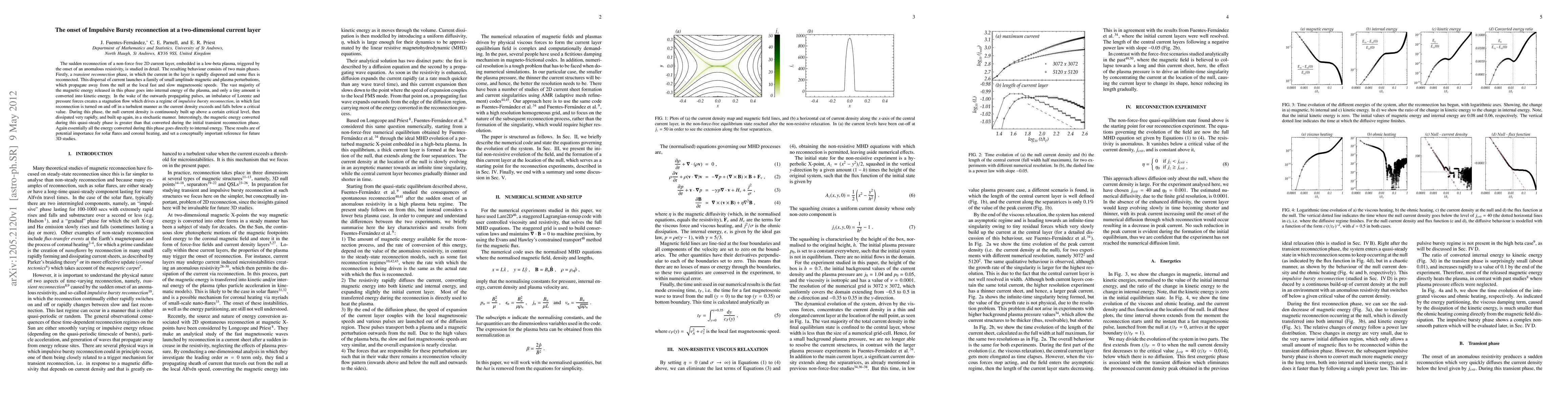 Researchers study a sudden reconnection of a non-force free current layer in a plasma, finding two phases: one with rapid dispersal of current and another with impulsive bursty reconnection driven by an imbalance of forces.
