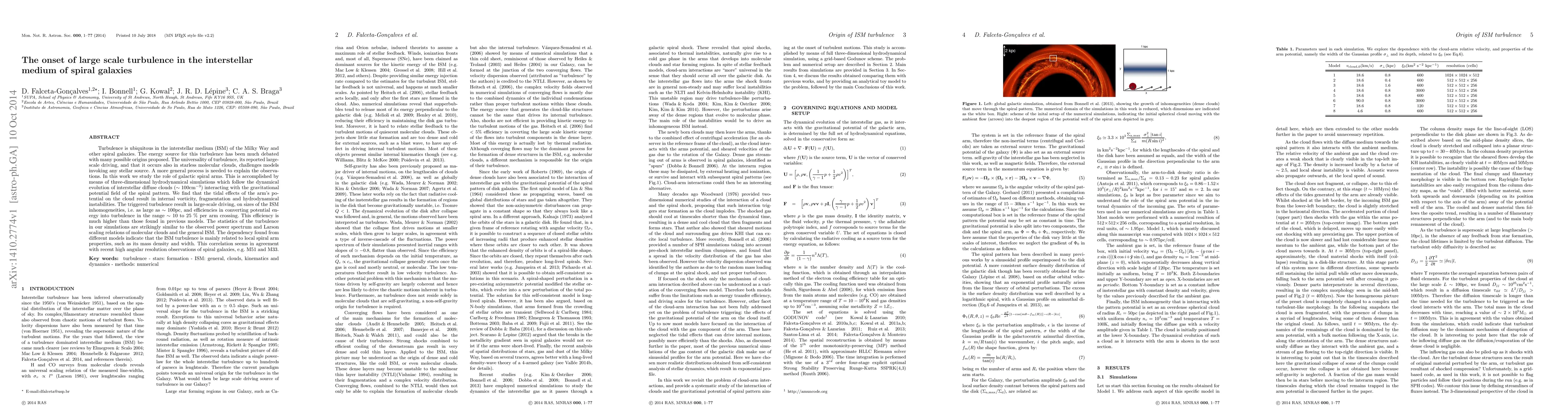 The paper presents detailed three-dimensional hydrodynamical simulations demonstrating that spiral arms can efficiently drive turbulence in diffuse interstellar clouds, providing a plausible explanation for the observed large-scale turbulence in the ISM of spiral galaxies.