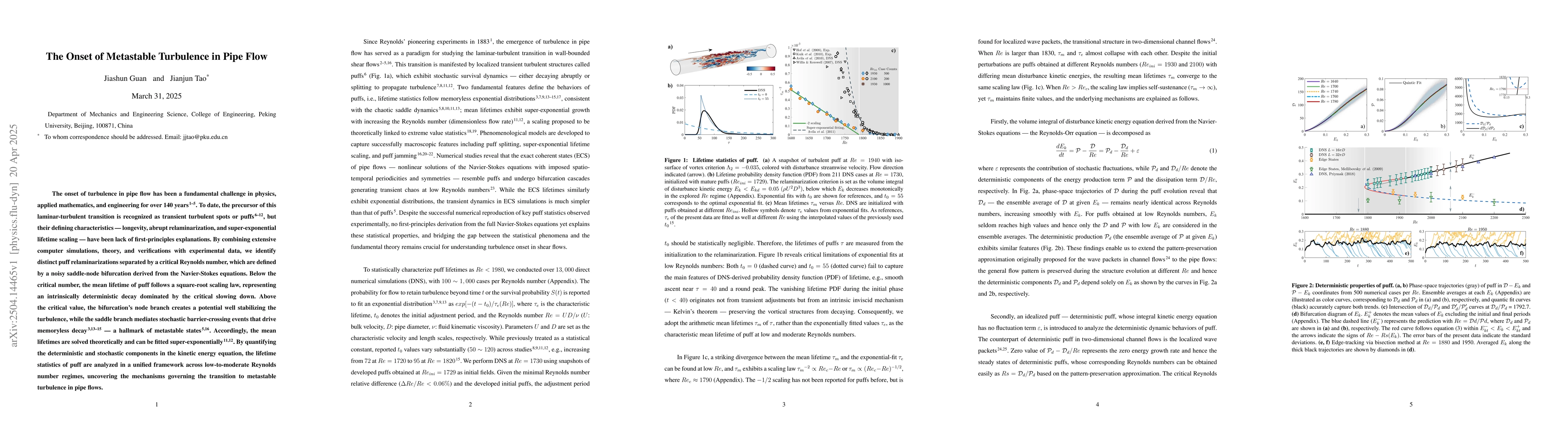 The study combines extensive computer simulations, theoretical analysis, and experimental verifications to investigate the onset of metastable turbulence in pipe flow, focusing on transient turbulent spots or puffs.