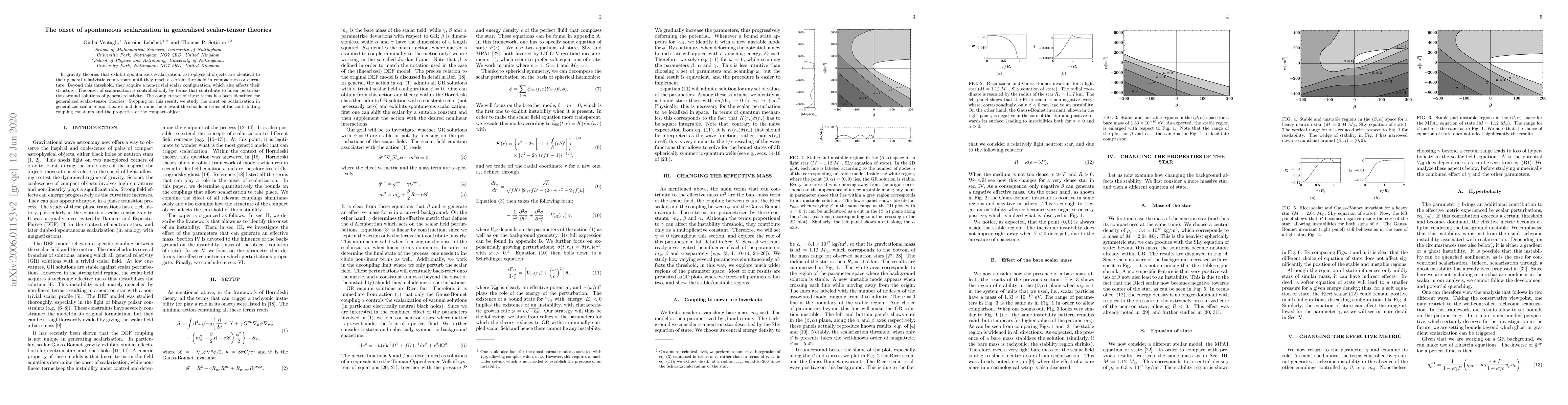 This paper investigates the conditions under which astrophysical objects undergo spontaneous scalarization in generalized scalar-tensor theories, identifying the thresholds for this transition based on compactness and curvature, and relating these thresholds to coupling constants and object properties.