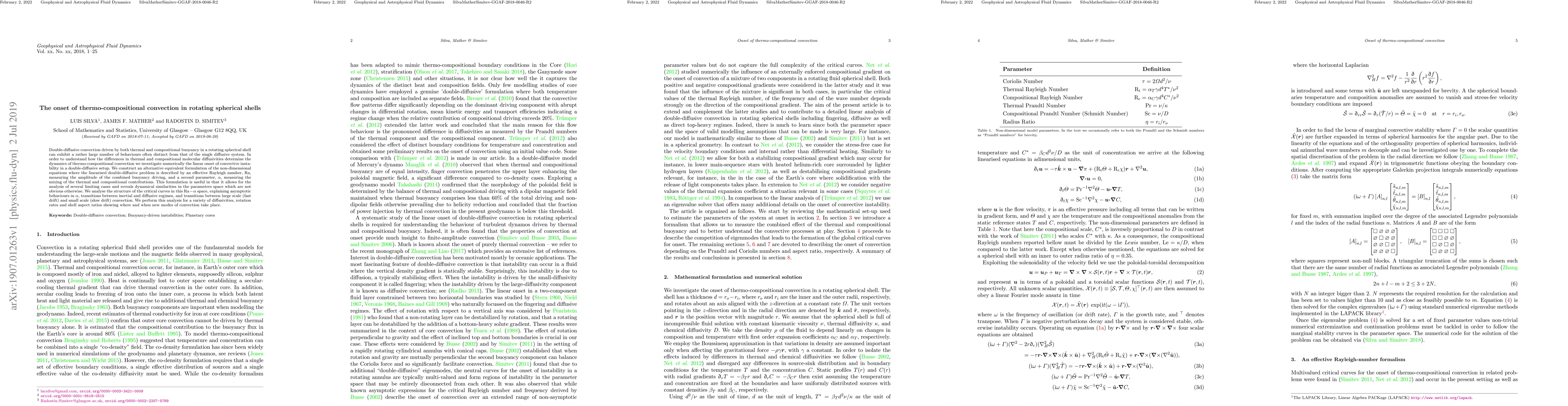 This paper numerically investigates the linear onset of thermo-compositional convection in rotating spherical shells, focusing on the interplay between thermal and compositional buoyancy. It introduces an alternative formulation to analyze the critical curves in the effective Rayleigh number and mixing parameter space, revealing transitions between different convection regimes and identifying conditions for new convection modes.
