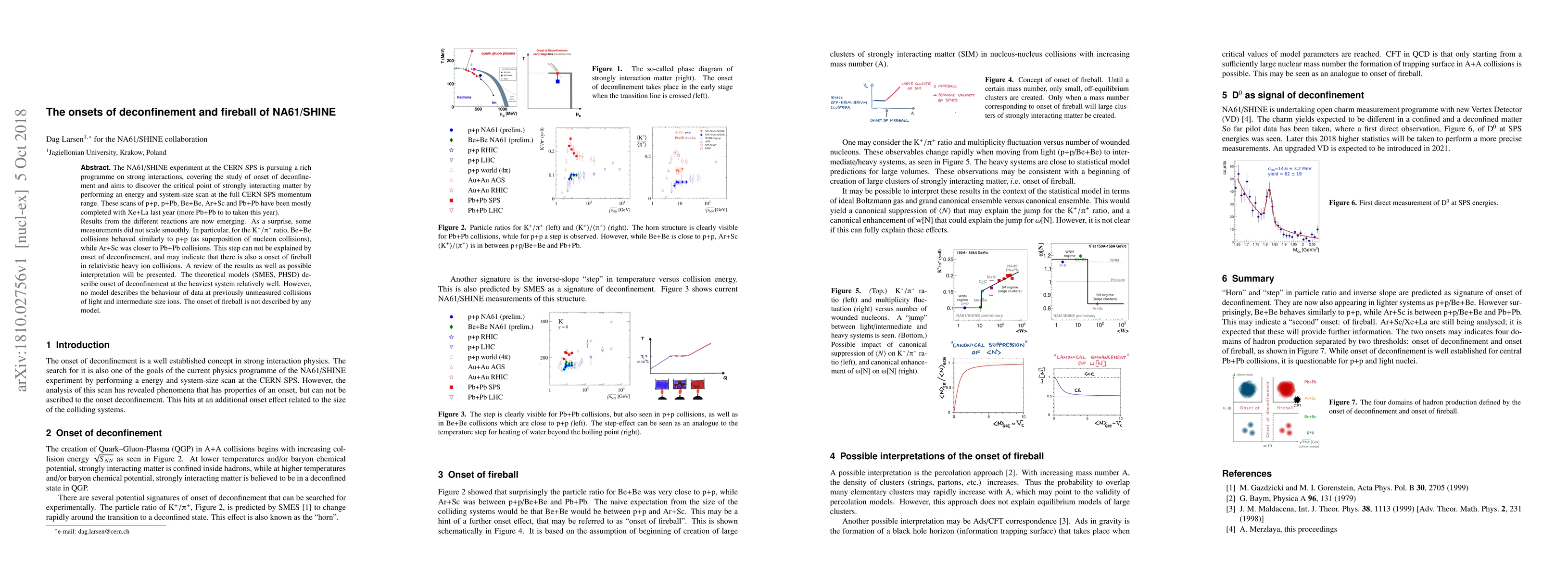 The NA61/SHINE experiment at the CERN SPS is pursuing a rich programme on strong interactions, covering the study of onset of deconfinement and aims to discover the critical point of strongly interacting matter by performing an energy and system-size scan at the full CERN SPS momentum range. These scans of p+p, p+Pb, Be+Be, Ar+Sc and Pb+Pb have been mostly completed with Xe+La last year (more Pb+Pb to to taken this year). Results from the different reactions are now emerging. As a surprise, some measurements did not scale smoothly. In particular, for the $\rm K^+/\piup^+$ ratio, Be+Be collisions behaved similarly to p+p (as superposition of nucleon collisions), while Ar+Sc was closer to Pb+Pb collisions. This step can not be explained by onset of deconfinement, and may indicate that there is also a onset of fireball in relativistic heavy ion collisions. A review of the results as well as possible interpretation will be presented. The theoretical models (SMES, PHSD) describe onset of deconfinement at the heaviest system relatively well. However, no model describes the behaviour of data at previously unmeasured collisions of light and intermediate size ions. The onset of fireball is not described by any model.