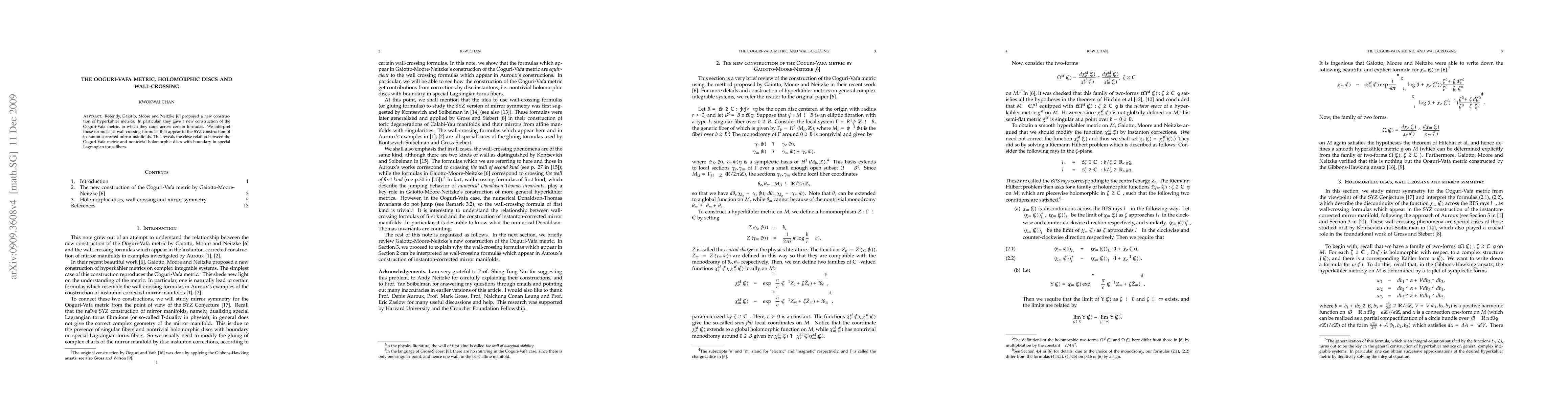 Summary: The paper discusses Gaiotto, Moore, and Neitzke's construction of the Ooguri-Vafa metric, linking it to wall-crossing formulas in the SYZ construction and showing its relation to holomorphic discs in special Lagrangian torus fibers.
