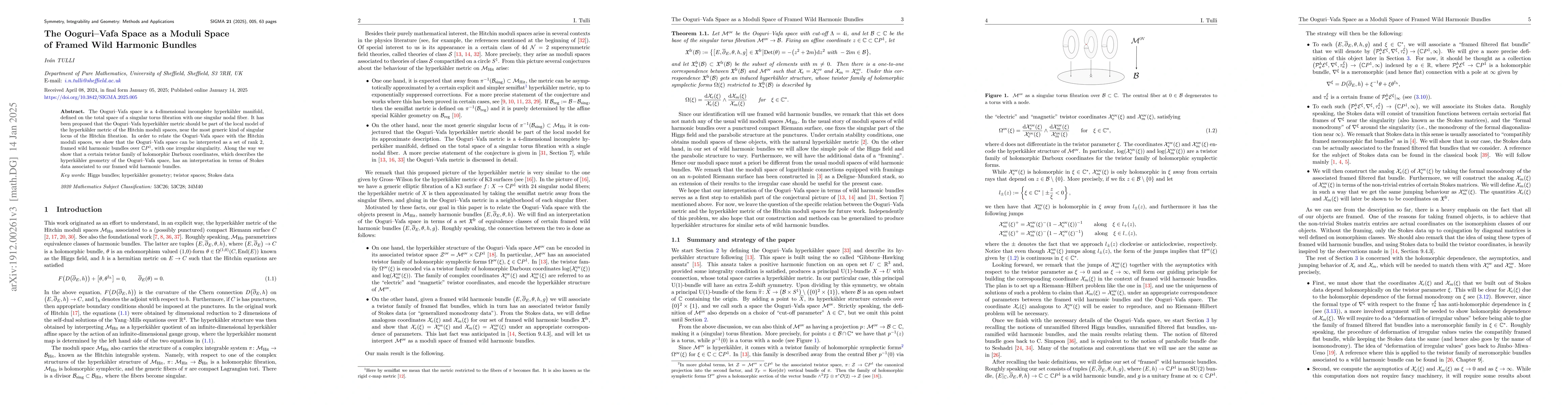 This paper explores the Ooguri-Vafa space as a moduli space for rank 2 framed wild harmonic bundles over $\mathbb{C}P^1$, revealing its connection to the Hitchin moduli spaces via a singular torus fibration and Stokes data interpretation.