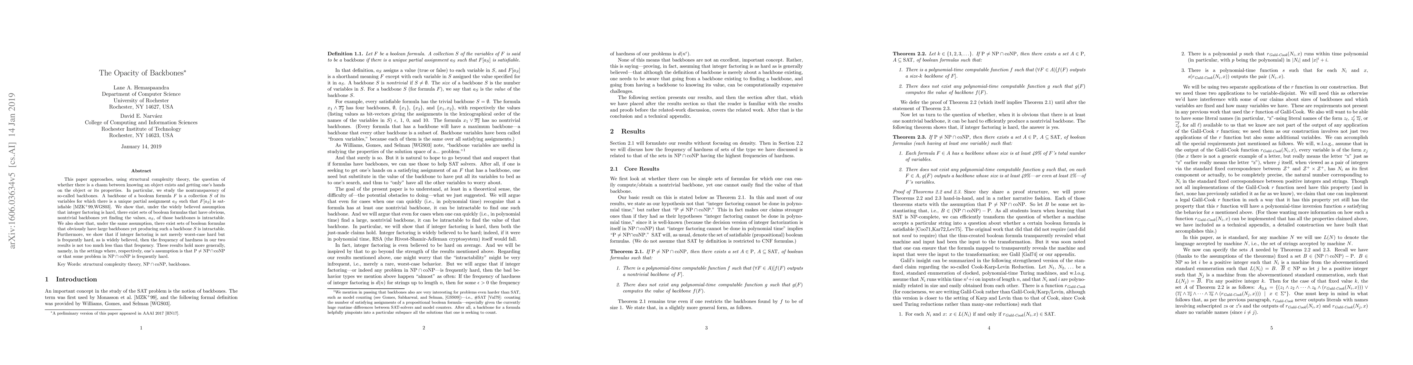 This work is novel because it provides a new framework for understanding the opacity of backbones and has implications for cryptography and circuit theory.