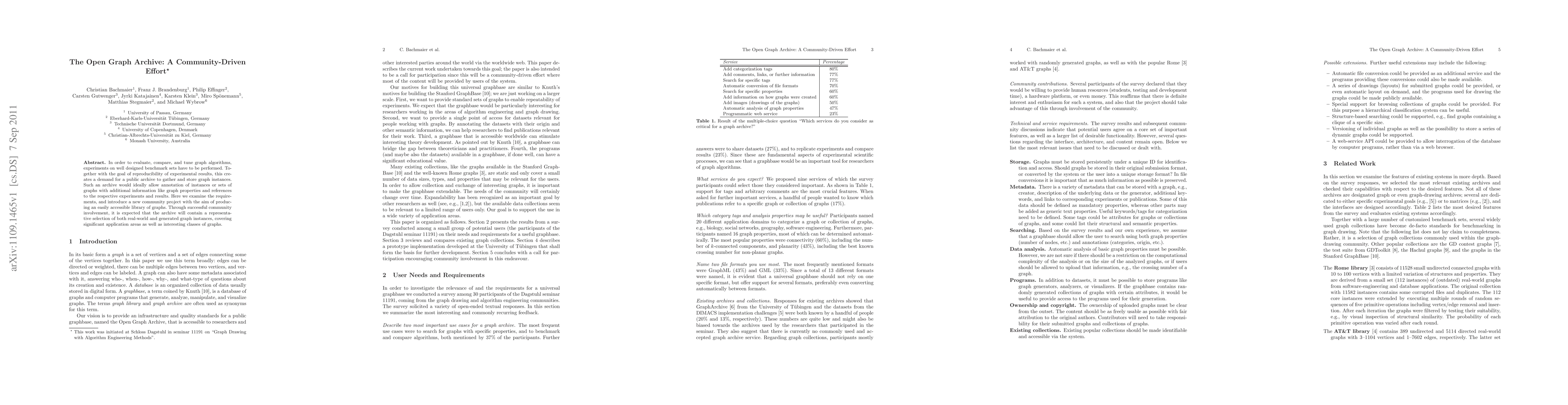 In order to evaluate, compare, and tune graph algorithms, experiments on well designed benchmark sets have to be performed. Together with the goal of reproducibility of experimental results, this creates a demand for a public archive to gather and store graph instances. Such an archive would ideally allow annotation of instances or sets of graphs with additional information like graph properties and references to the respective experiments and results. Here we examine the requirements, and introduce a new community project with the aim of producing an easily accessible library of graphs. Through successful community involvement, it is expected that the archive will contain a representative selection of both real-world and generated graph instances, covering significant application areas as well as interesting classes of graphs.