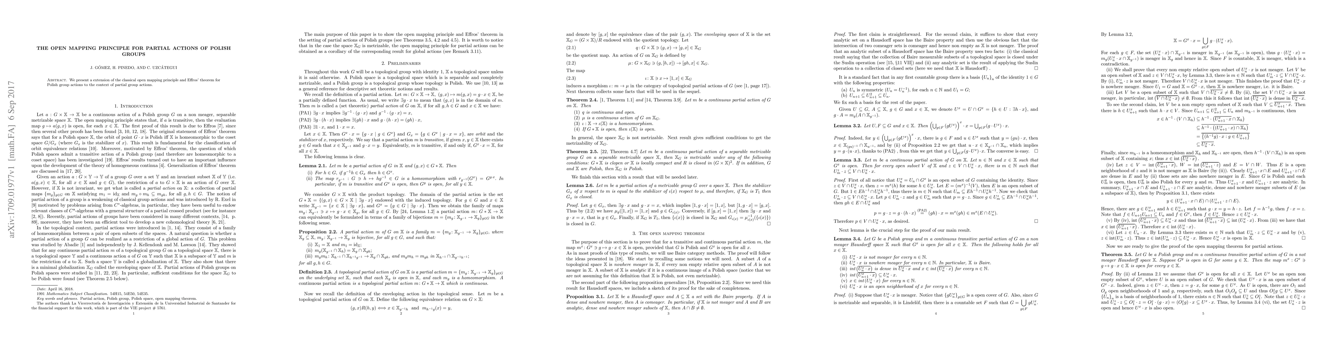 Summary: This paper extends the classical open mapping principle and Effros' theorem to the realm of partial actions of Polish groups, providing new insights into the structure and behavior of such actions. The results contribute to the understanding of topological dynamics in partial settings.