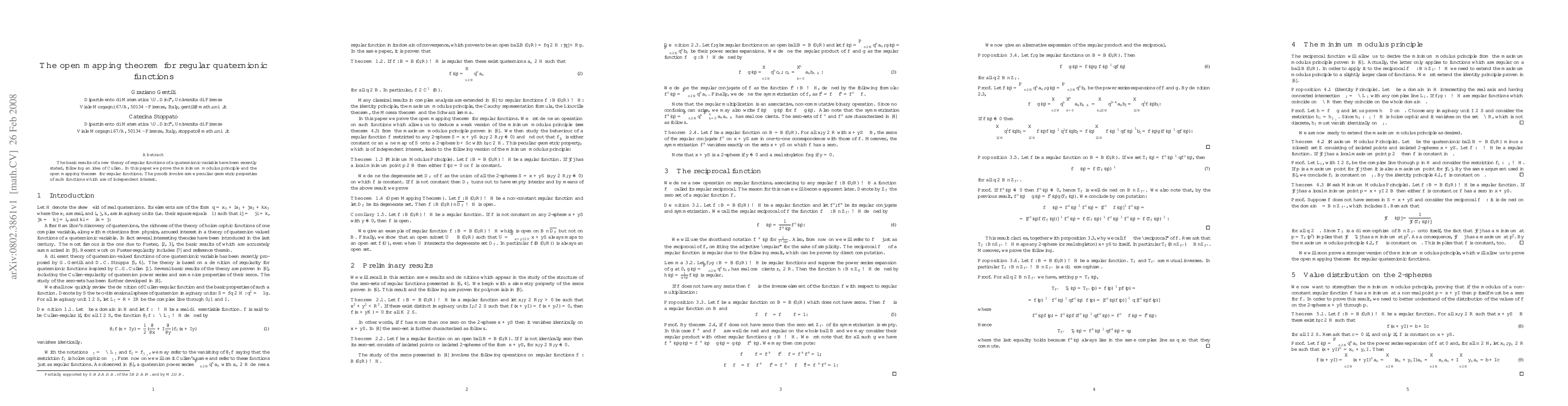 The basic results of a new theory of regular functions of a quaternionic variable have been recently stated, following an idea of Cullen. In this paper we prove the minimum modulus principle and the open mapping theorem for regular functions. The proofs involve some peculiar geometric properties of such functions which are of independent interest.