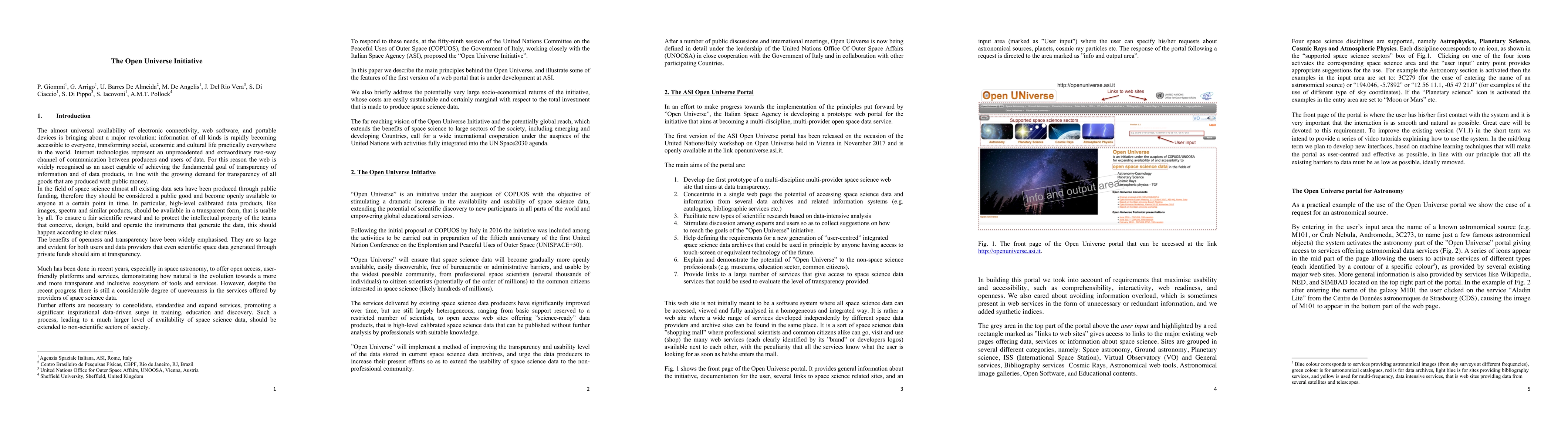 The almost universal availability of electronic connectivity, web software, and portable devices is bringing about a major revolution: information of all kinds is rapidly becoming accessible to everyone, transforming social, economic and cultural life practically everywhere in the world. Internet technologies represent an unprecedented and extraordinary two-way channel of communication between producers and users of data. For this reason the web is widely recognized as an asset capable of achieving the fundamental goal of transparency of information and of data products, in line with the growing demand for transparency of all goods that are produced with public money. This paper describes "Open Universe" an initiative proposed to the United Nations Committee on the Peaceful Uses of Outer Space (COPUOS) with the objective of stimulating a dramatic increase in the availability and usability of space science data, extending the potential of scientific discovery to new participants in all parts of the world.