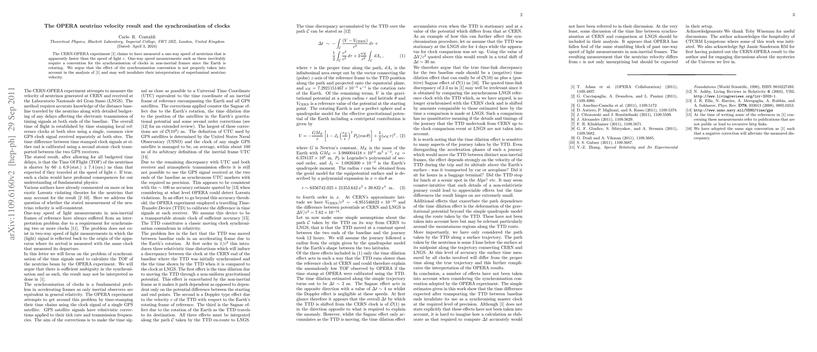 The CERN-OPERA experiment reported neutrinos traveling faster than light, but the study overlooks the impact of clock synchronization conventions in non-inertial frames, potentially invalidating their superluminal speed interpretation.